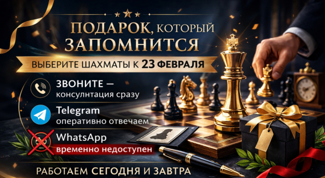 Мы в Telegram Подарочные шахматы к 23 февраля