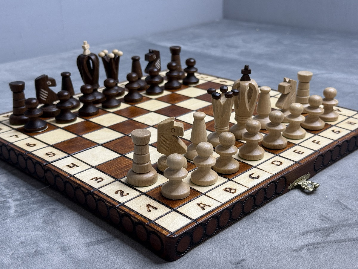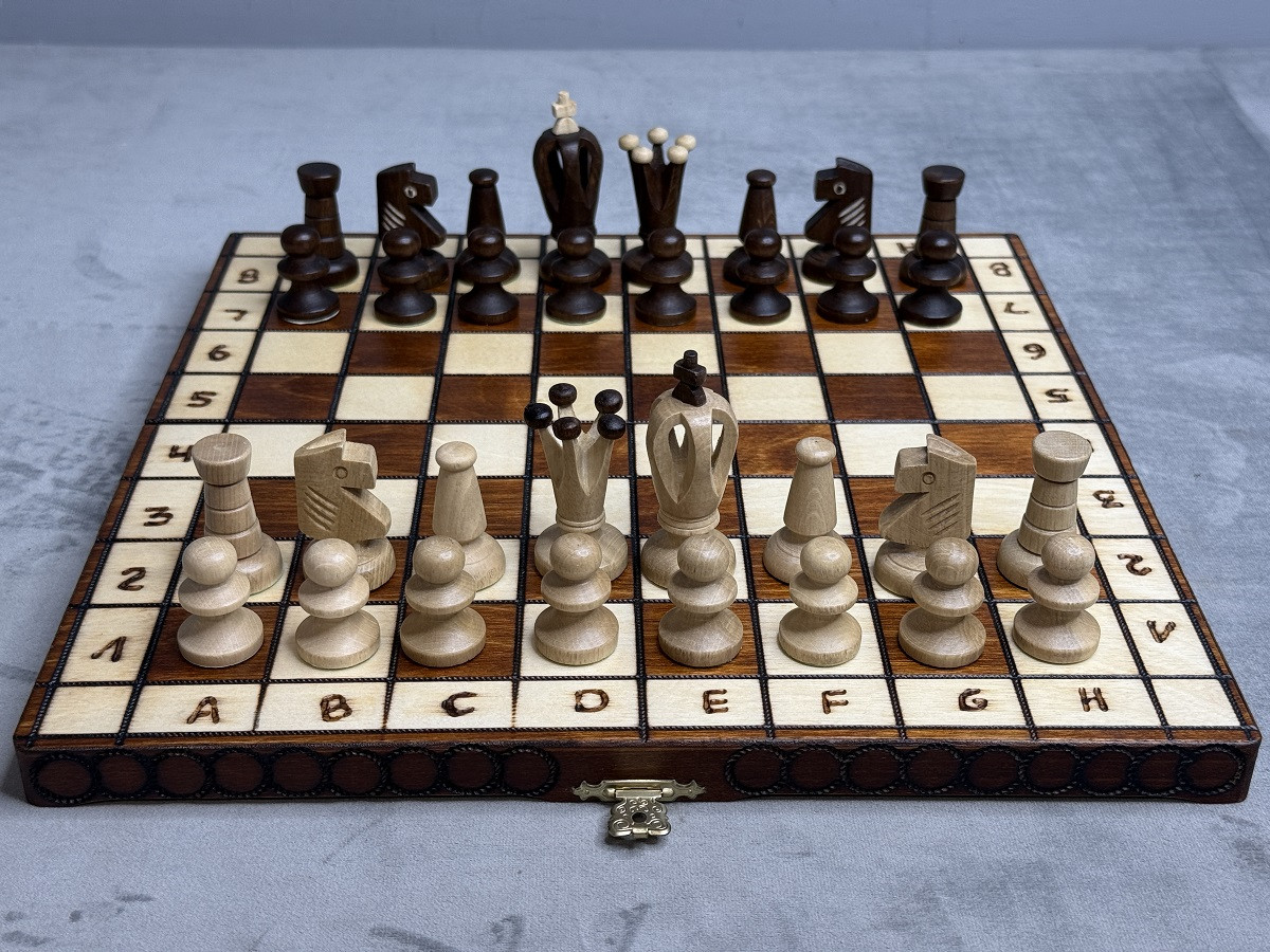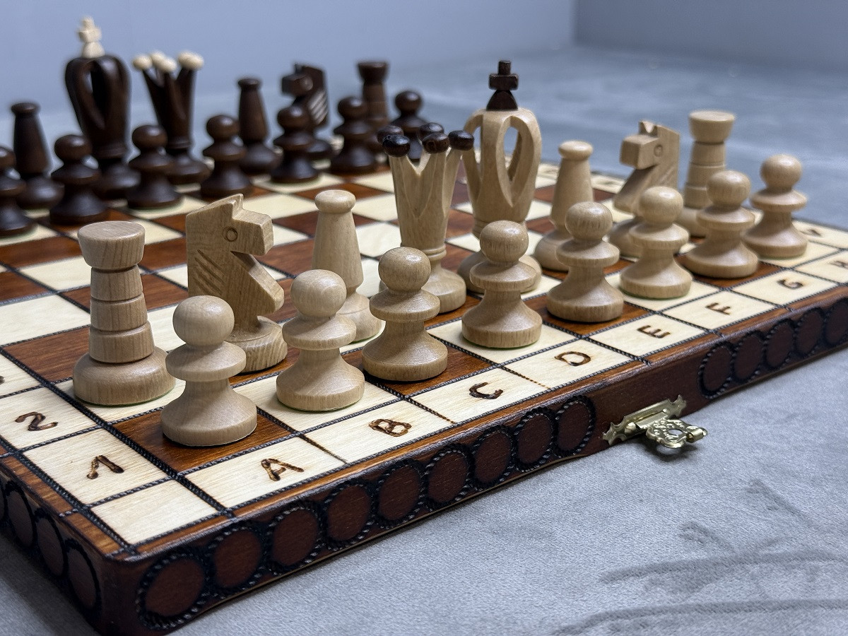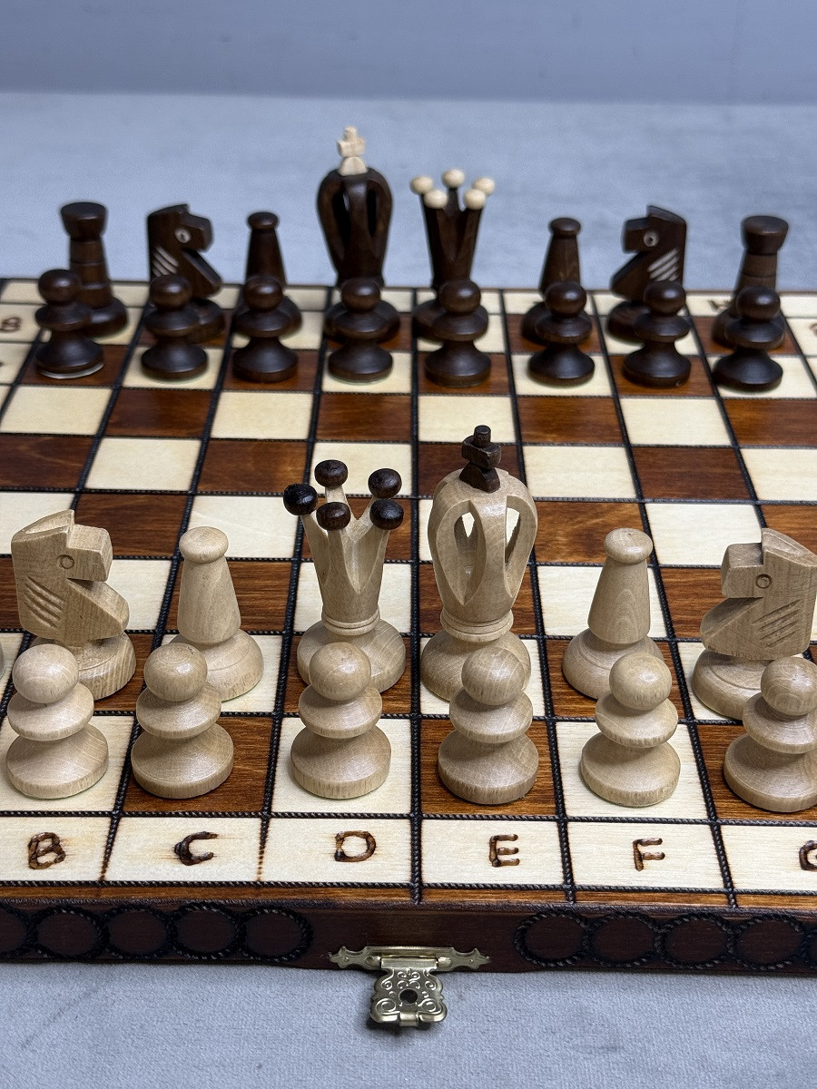 Фабрика Wegiel (Польша) гарантирует качество и долговечность шахматного набора.