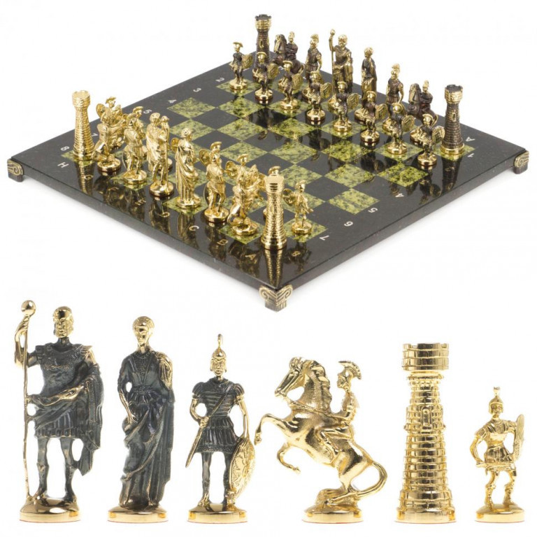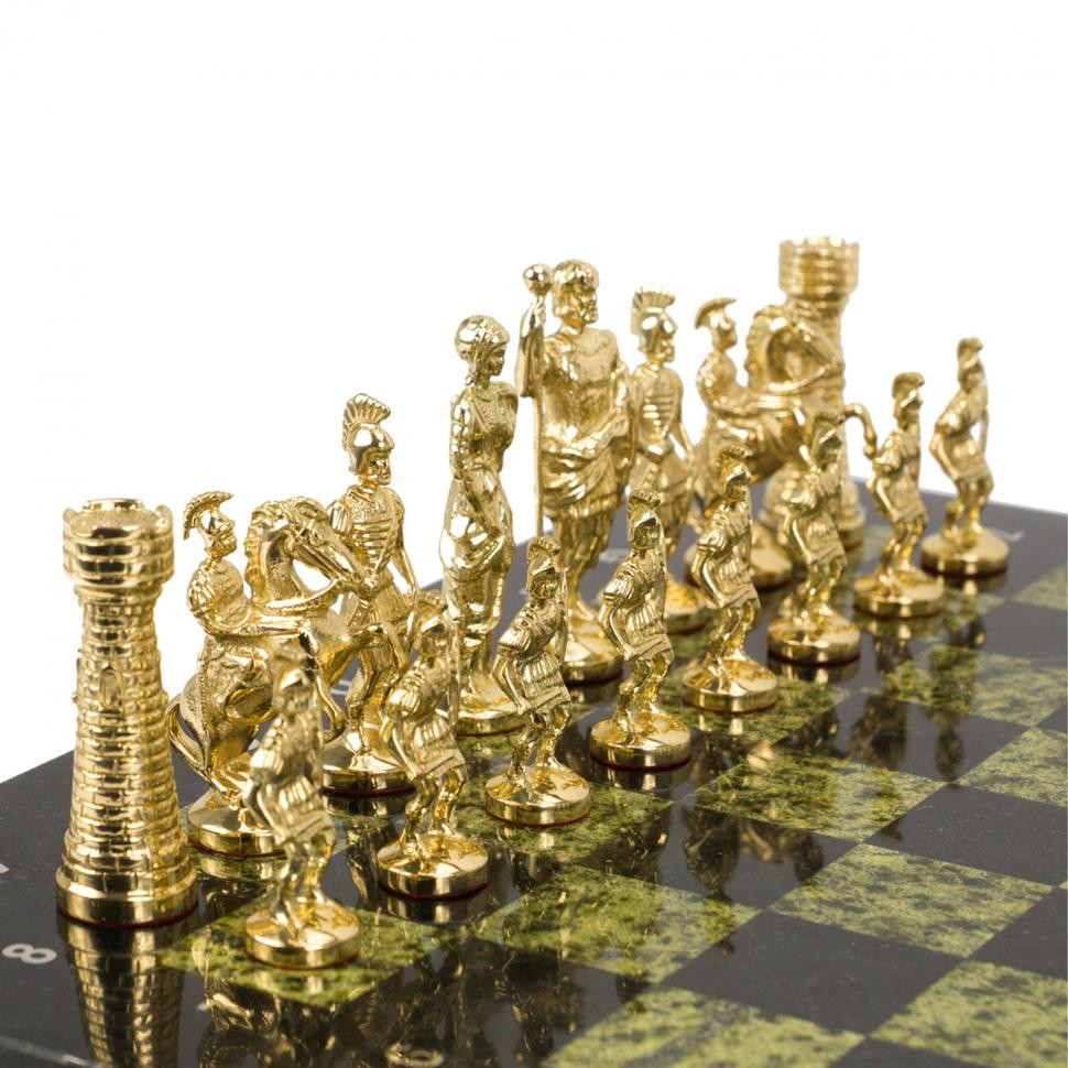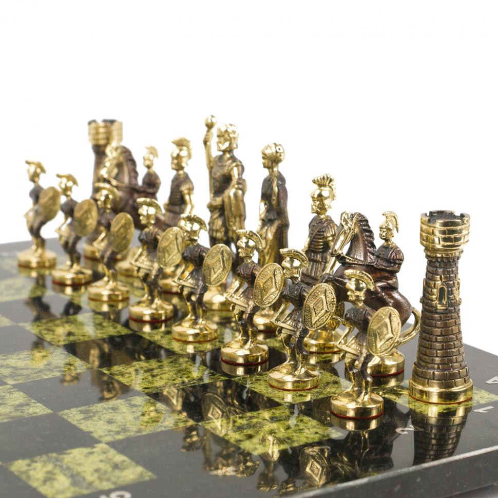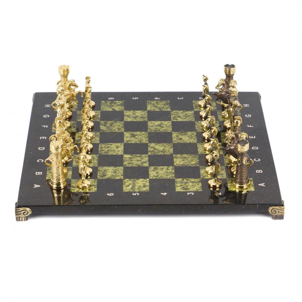Шахматы из камня "Македонская битва" доска змеевик 40х40 см