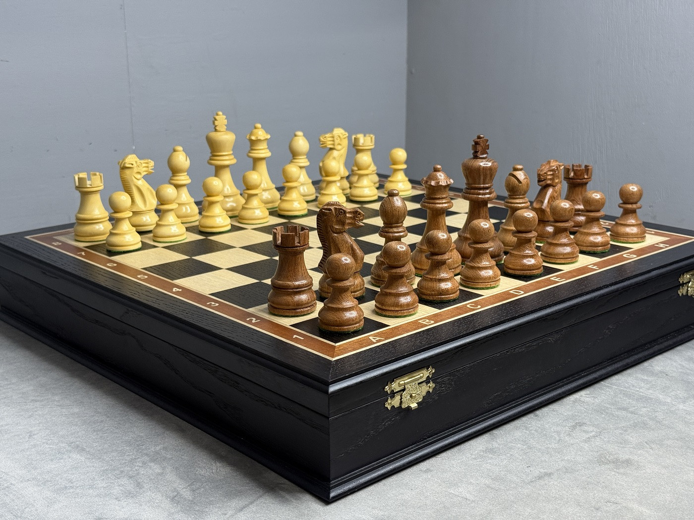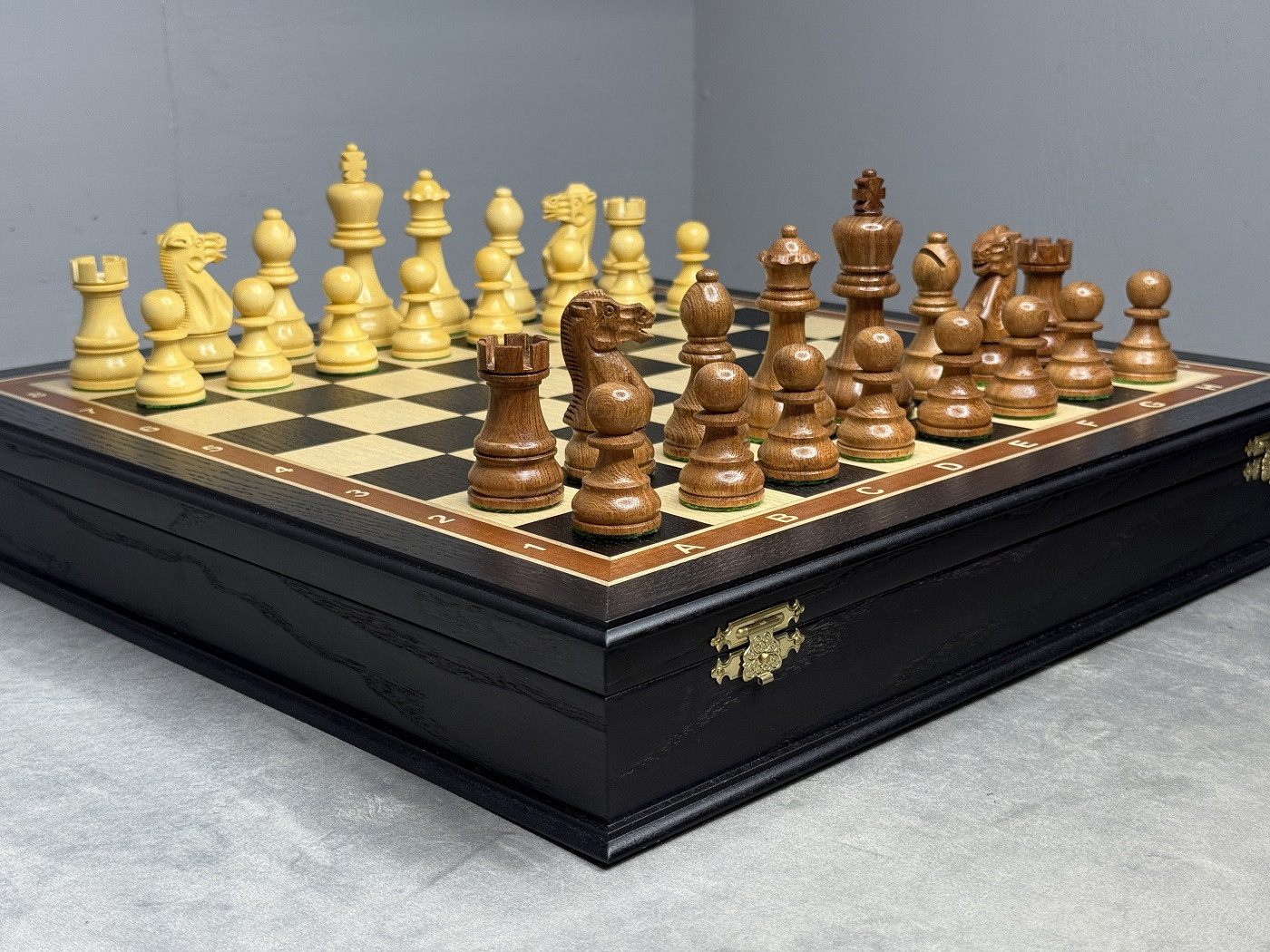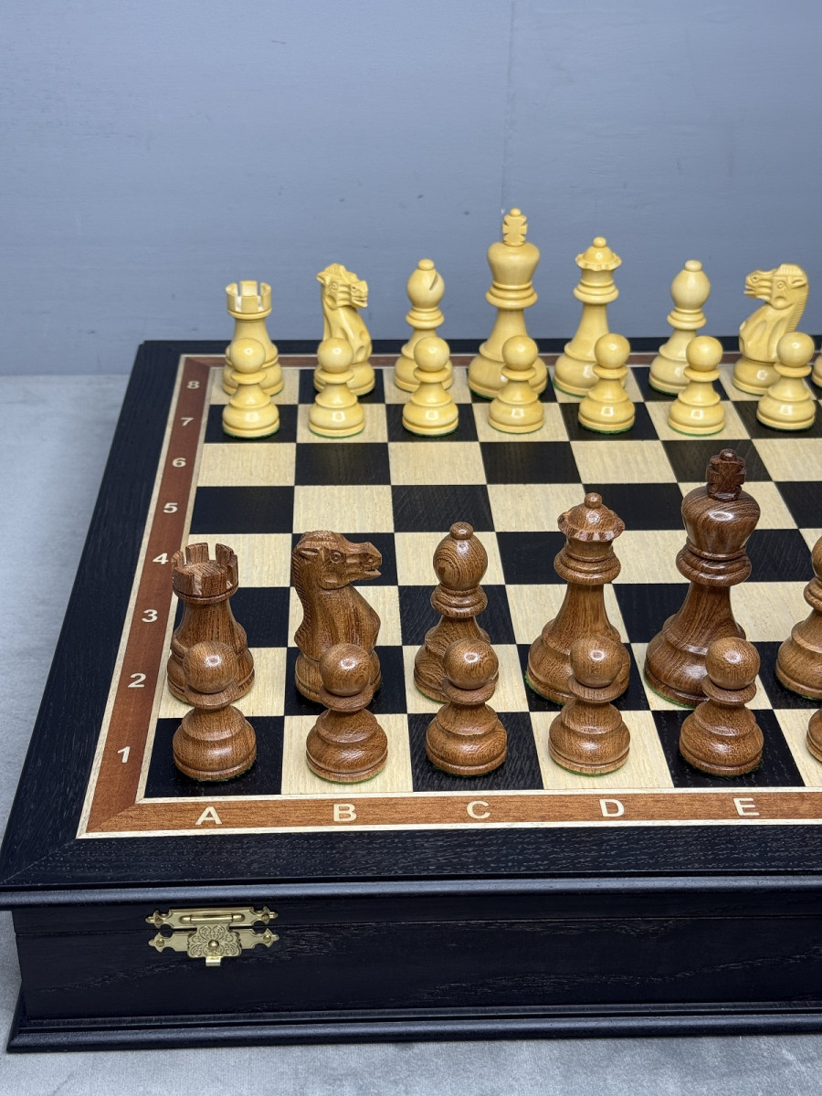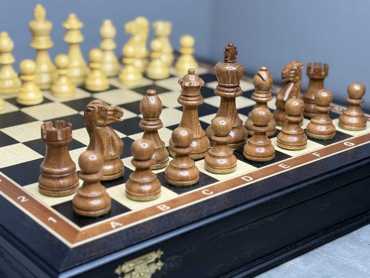 Шахматы подарочные в ларце с фигурами из самшита и палисандра люкс