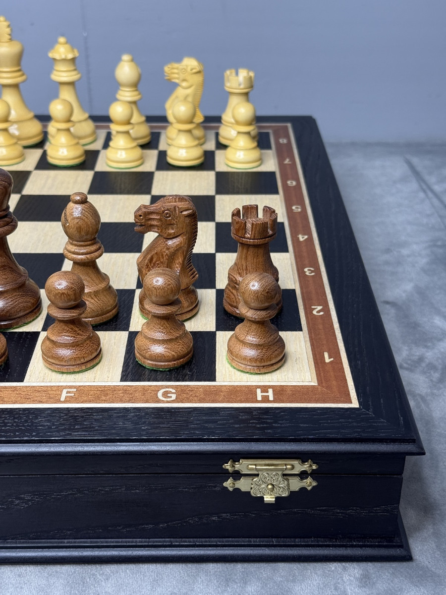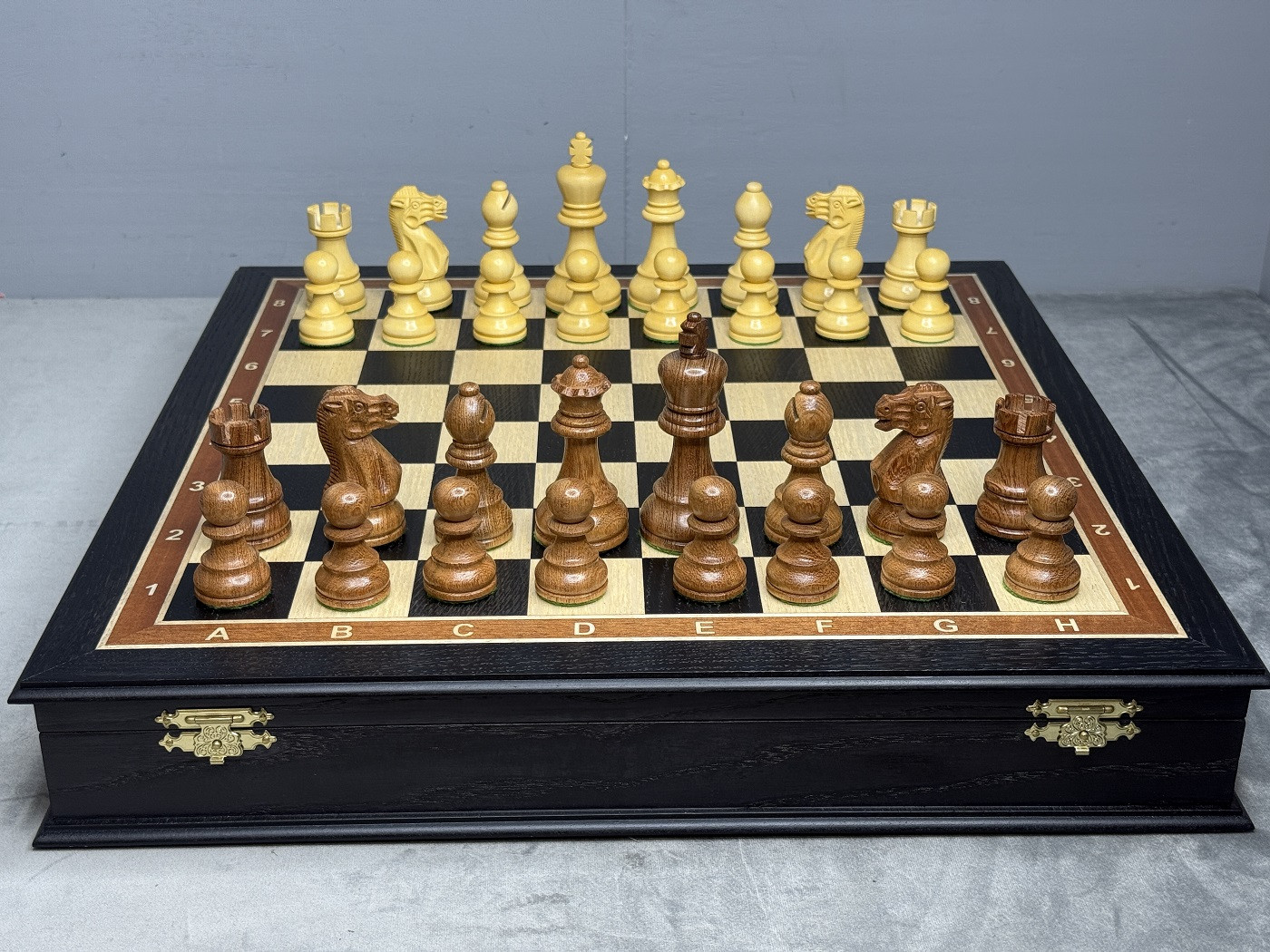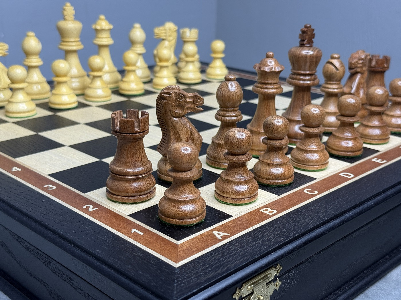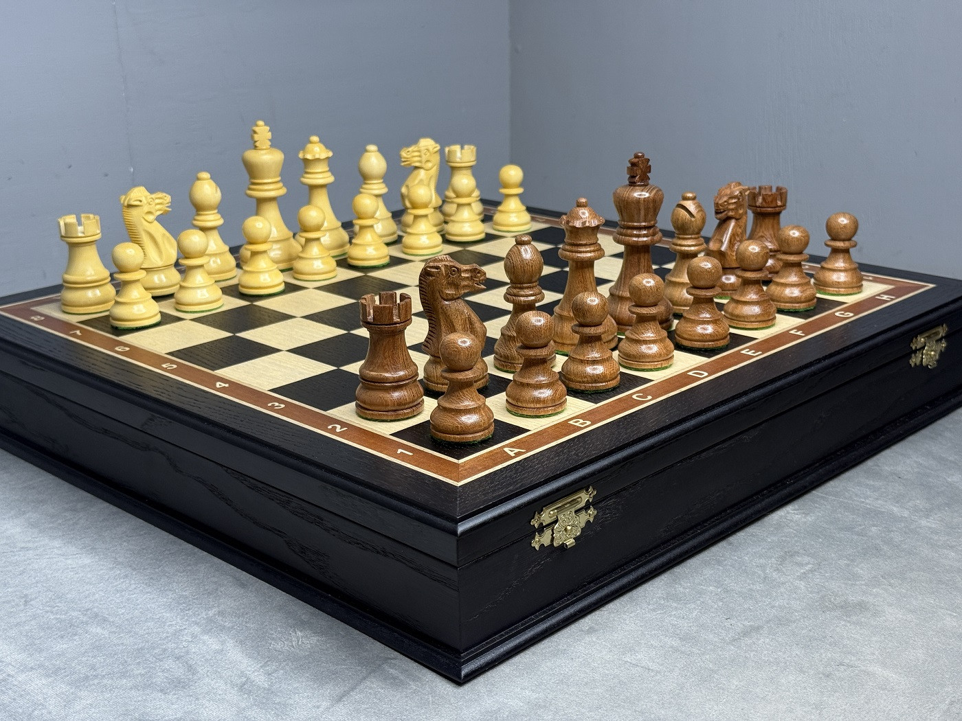 Шахматы подарочные в ларце с фигурами из самшита и палисандра люкс
