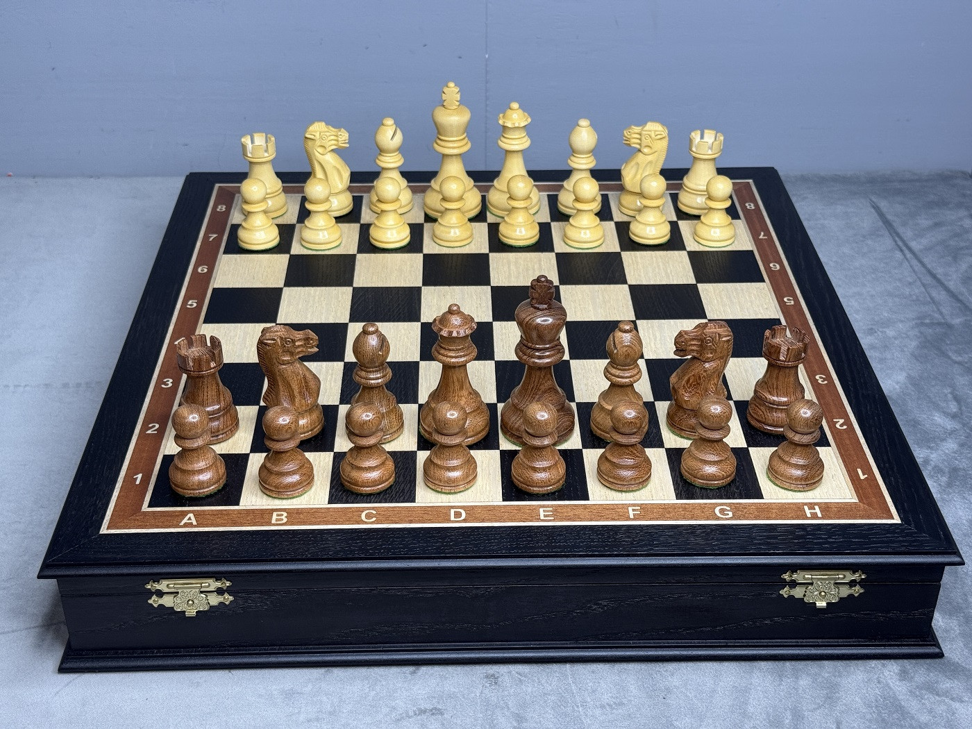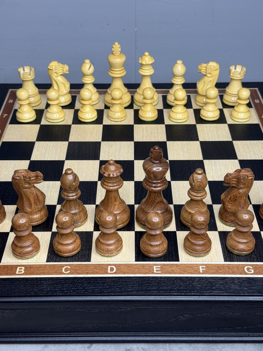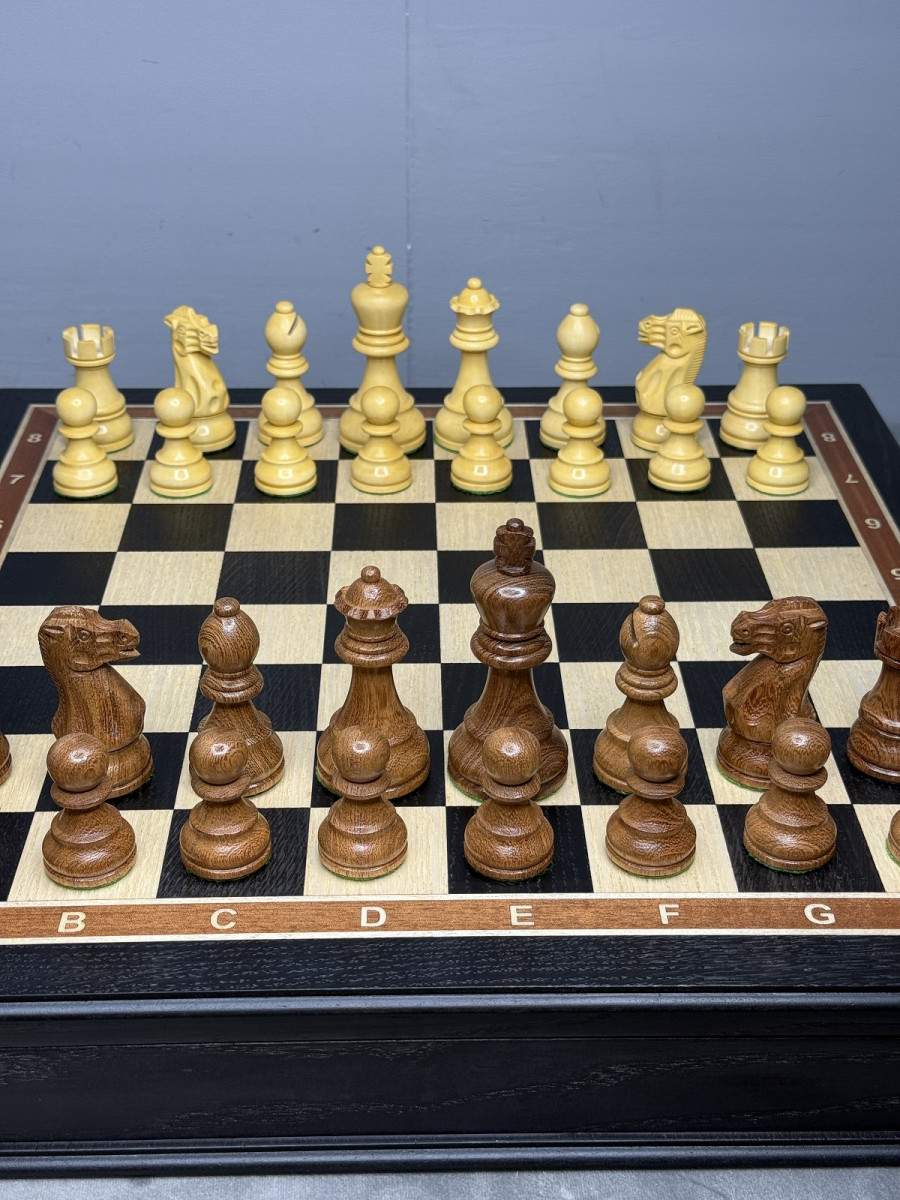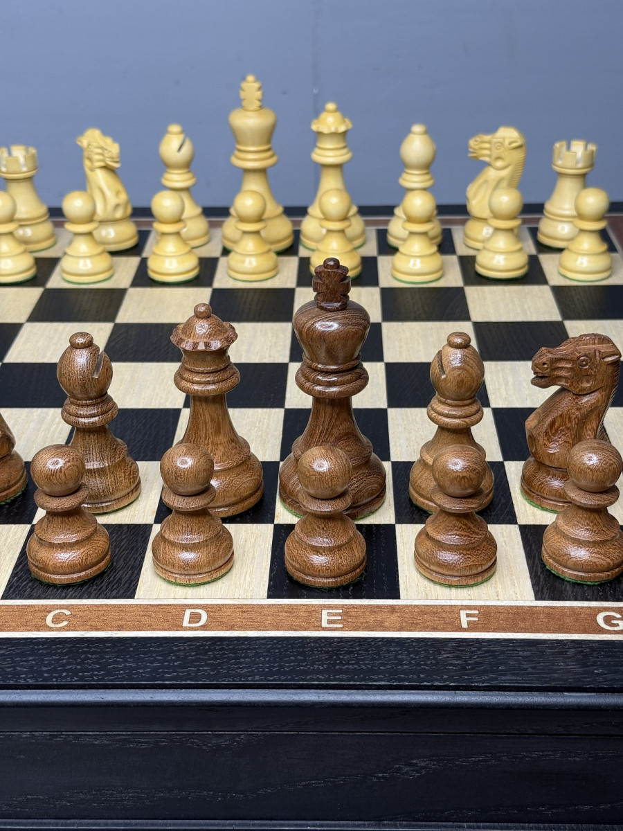 Шахматы подарочные в ларце с фигурами из самшита и палисандра люкс