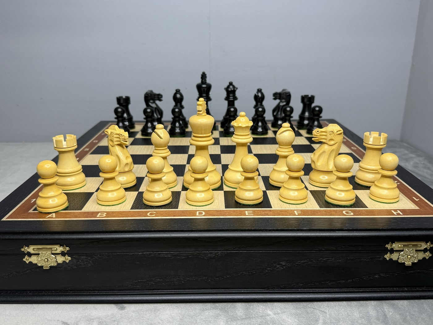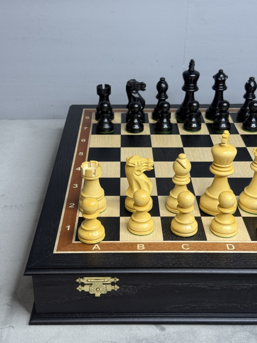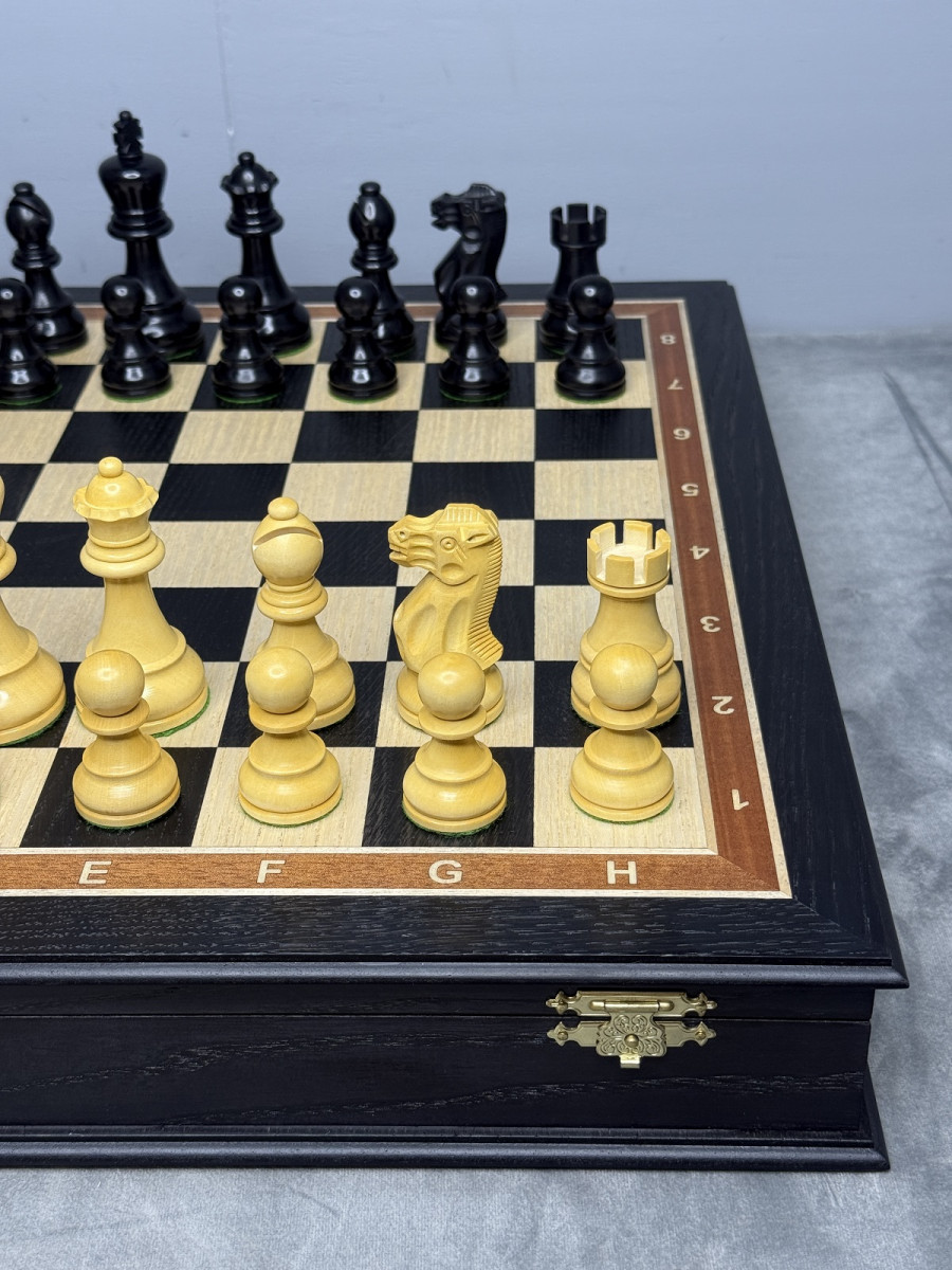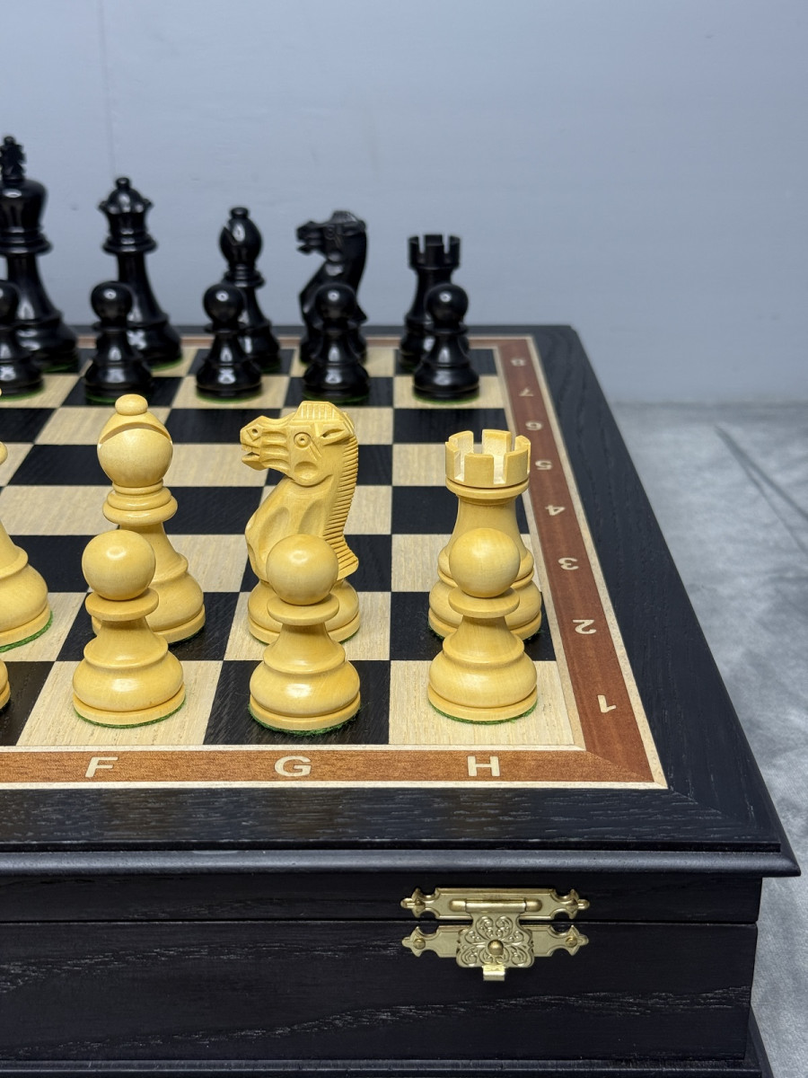 Шахматы подарочные в ларце с фигурами из самшита и палисандра черные люкс