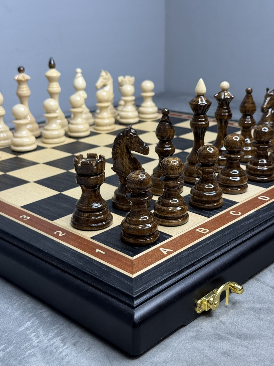 Такие шахматы легко впишутся в интерьер кабинета, офиса или гостиной, добавят статусности и станут надёжным набором на долгие годы.