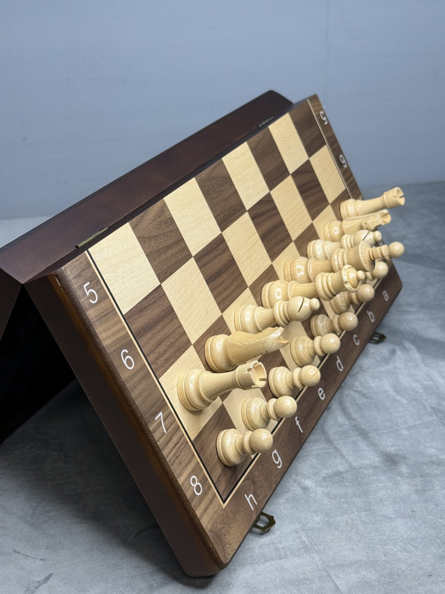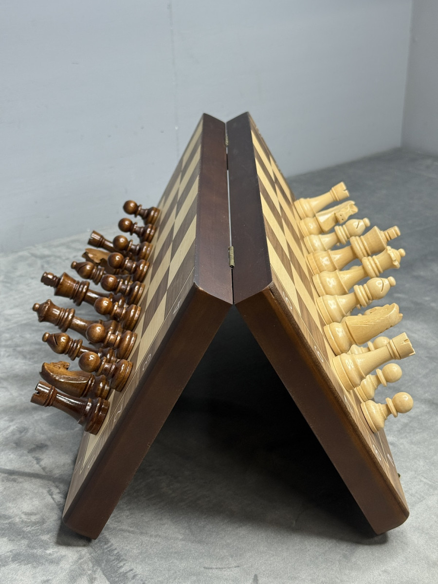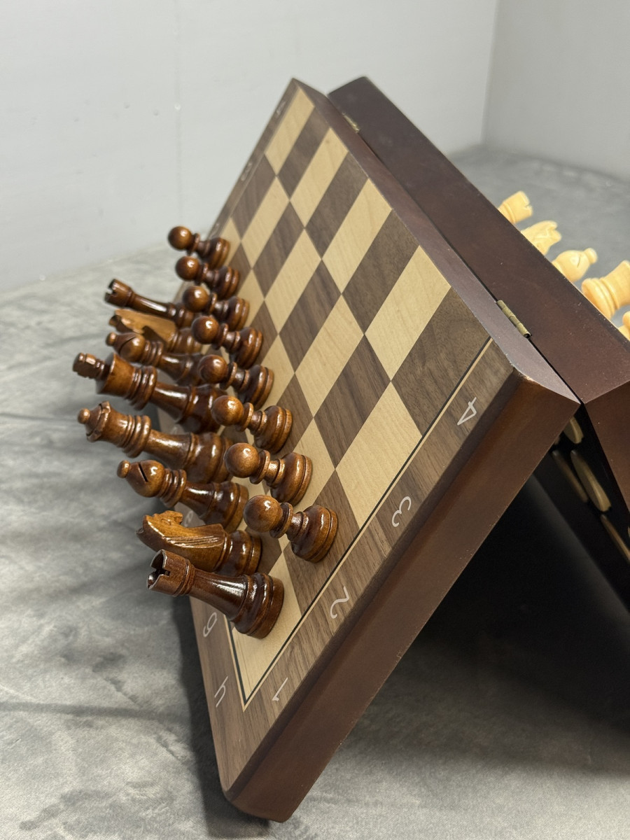 шахматы ручной работы из дерева орех и ясень, фигуры и фишки магнитные. Внутри доски есть ячейки для хранения фигур. Подойдут в подарок для детей и взрослых, размер доски в разложенном виде 39 на 39 см. Размер клетки 4 на 4 см , высота короля 8 см, высота пешки 3.5 см , диаметр основания шашки 3 см.