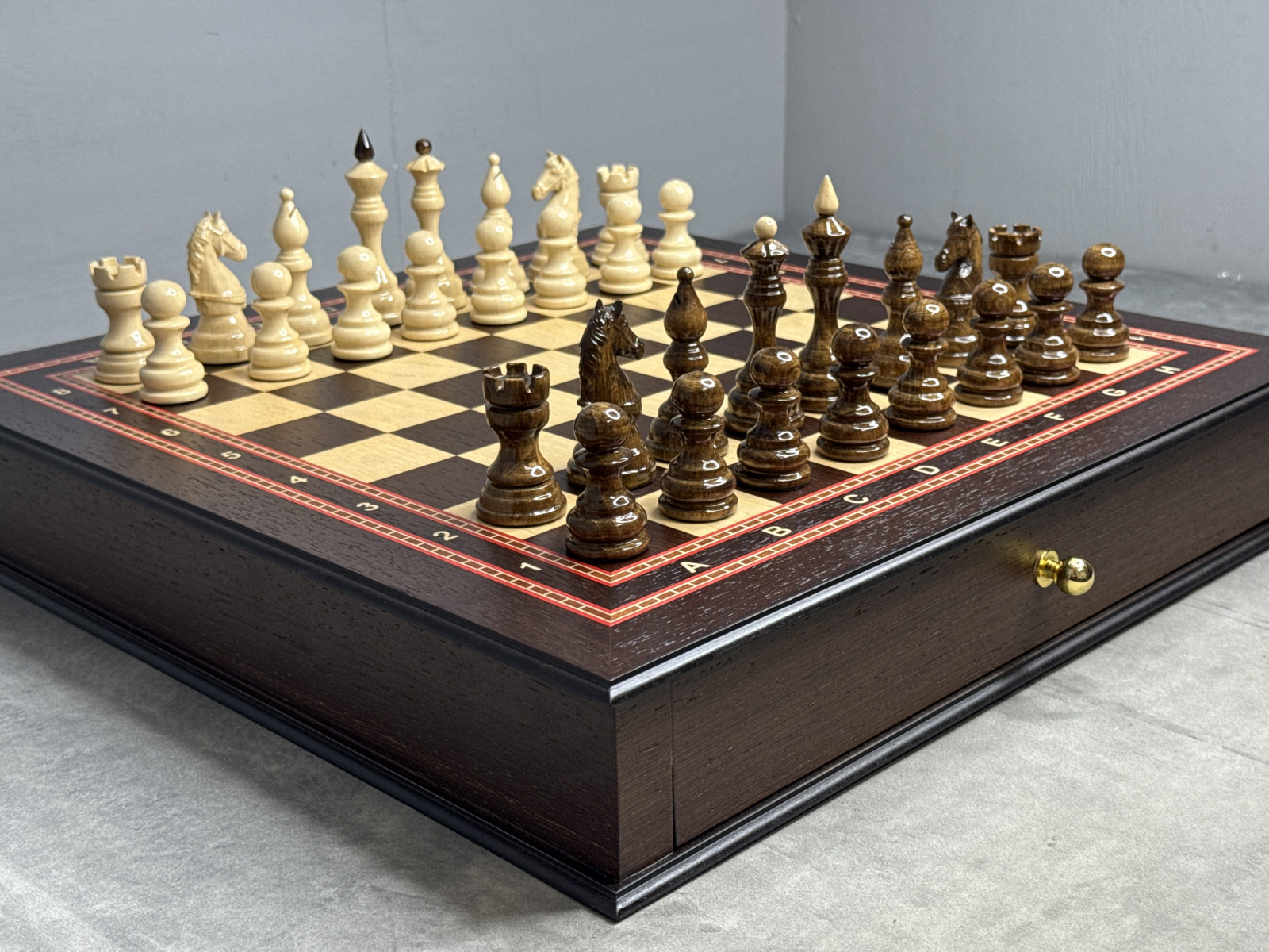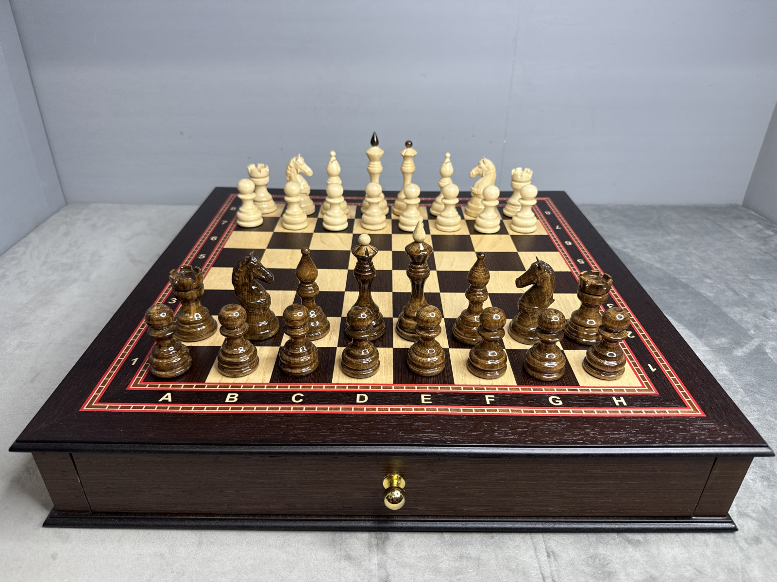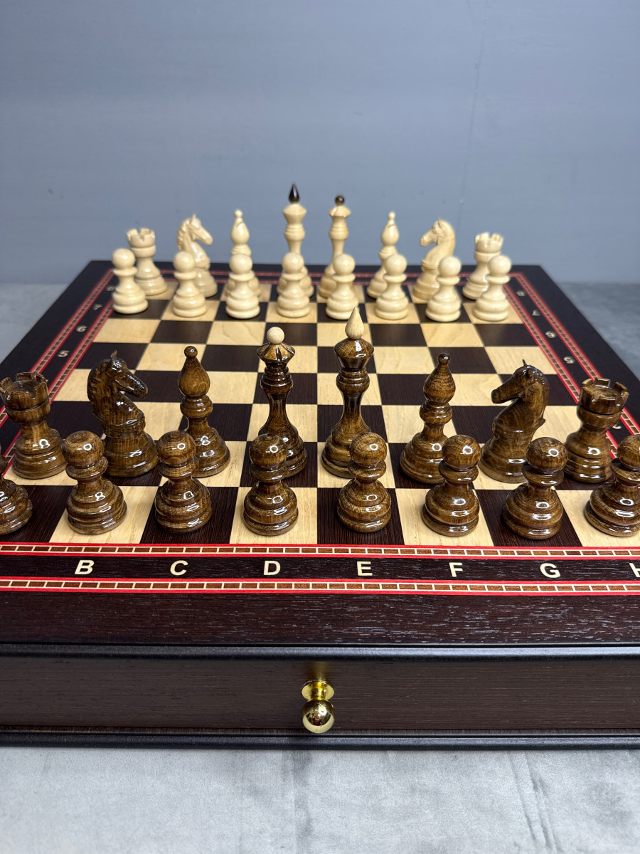 Подарочные шахматы в ларце из дуба и клёна — это сочетание благородных материалов, высокой точности ручной работы и продуманной функциональности. Набор создан для тех, кто ценит эстетику классических шахмат и хочет получить не просто игру, а полноценный статусный арт-объект.
