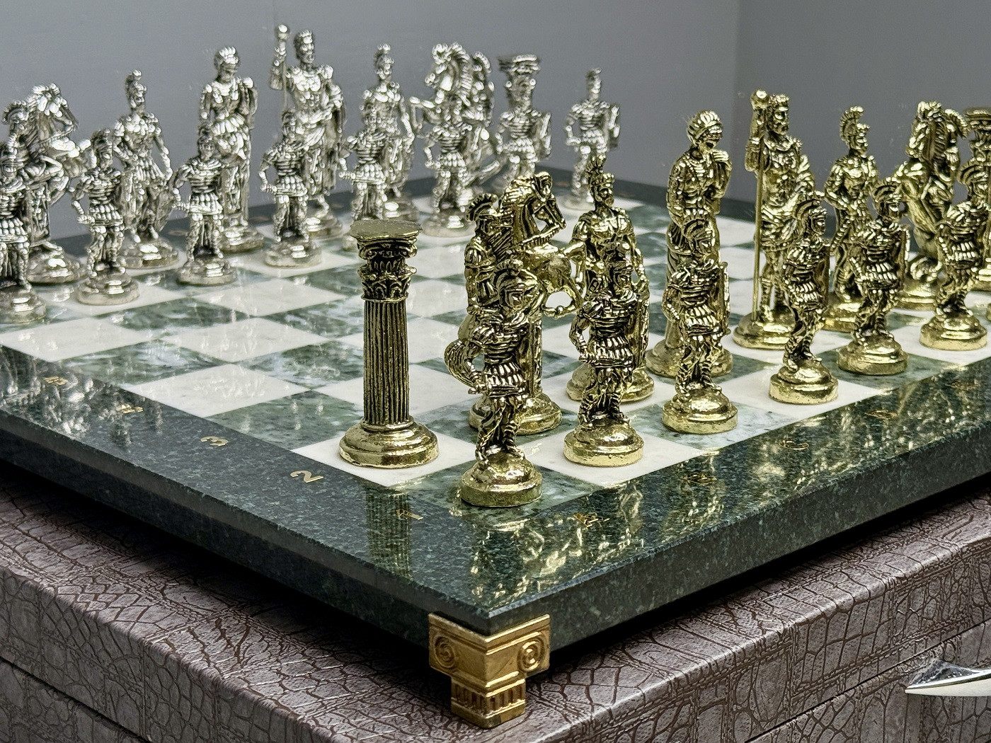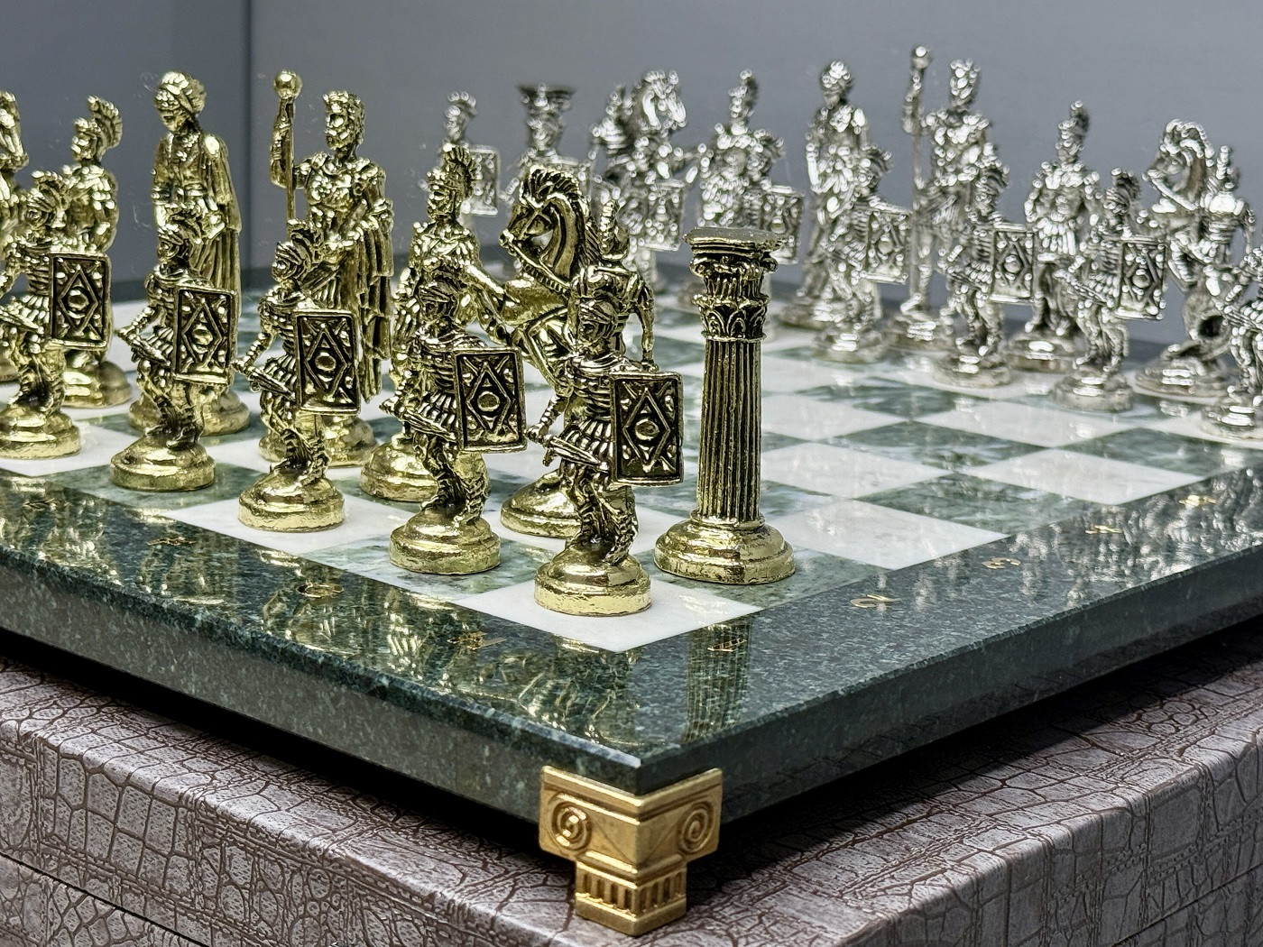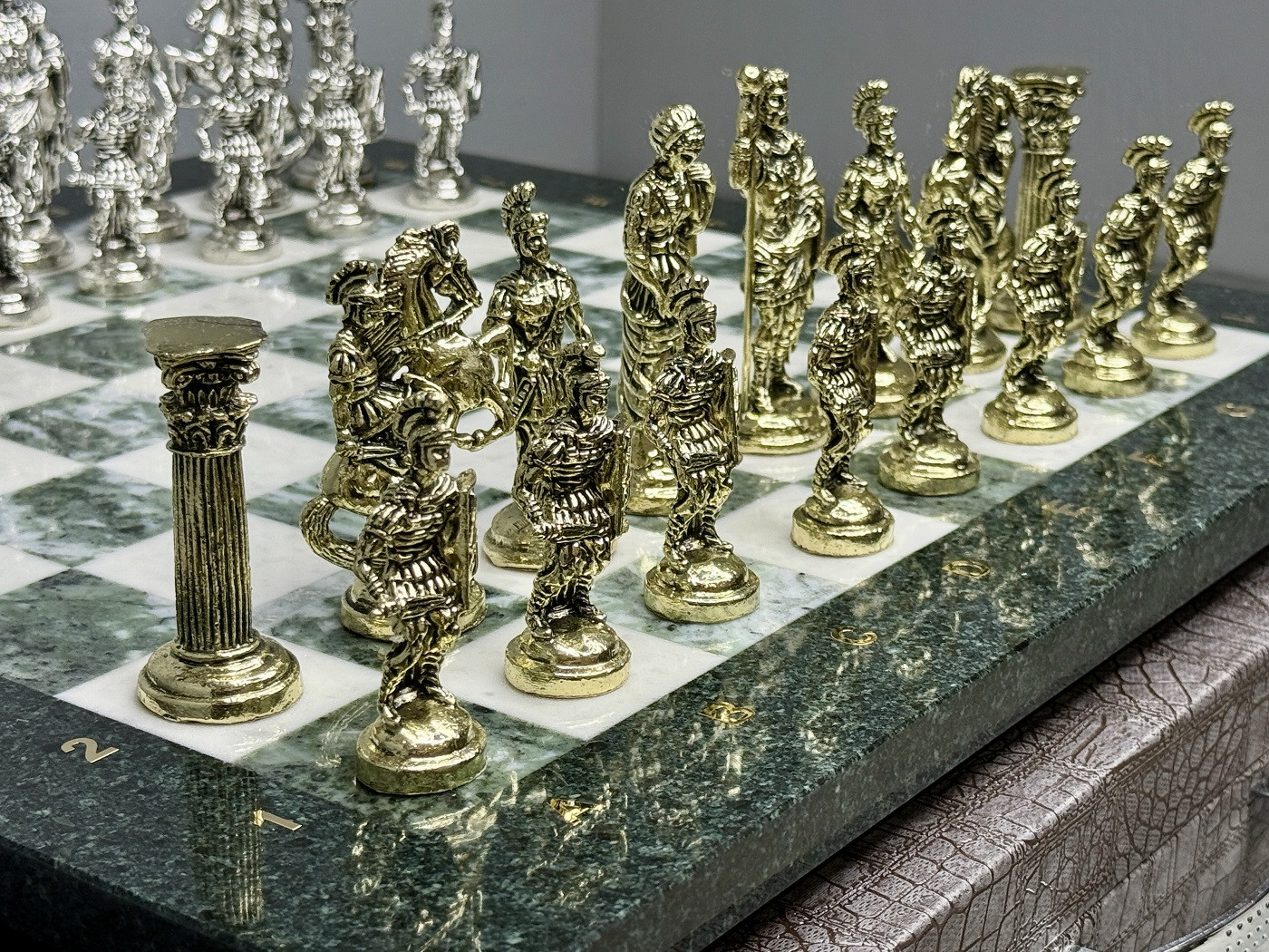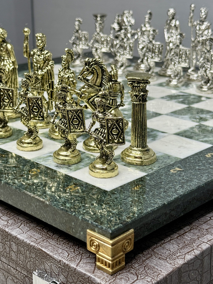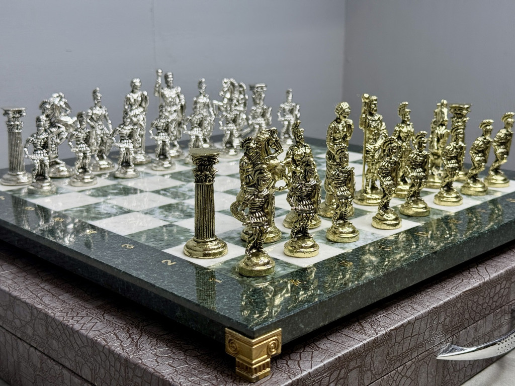 Шахматы каменные "Греция" доска 44х44 см камень мрамор