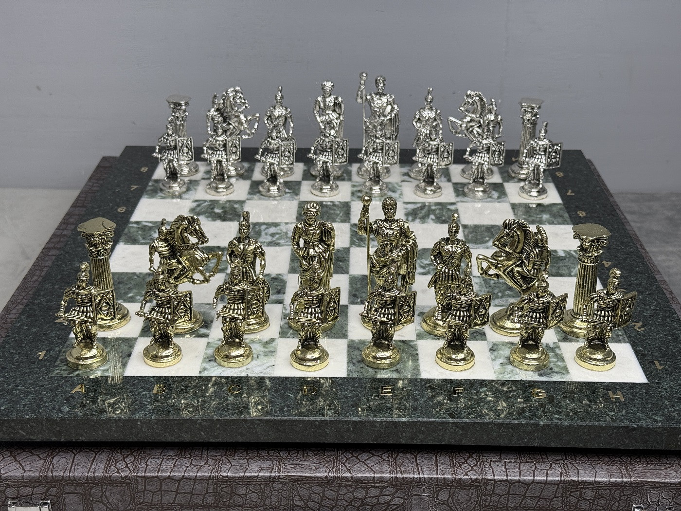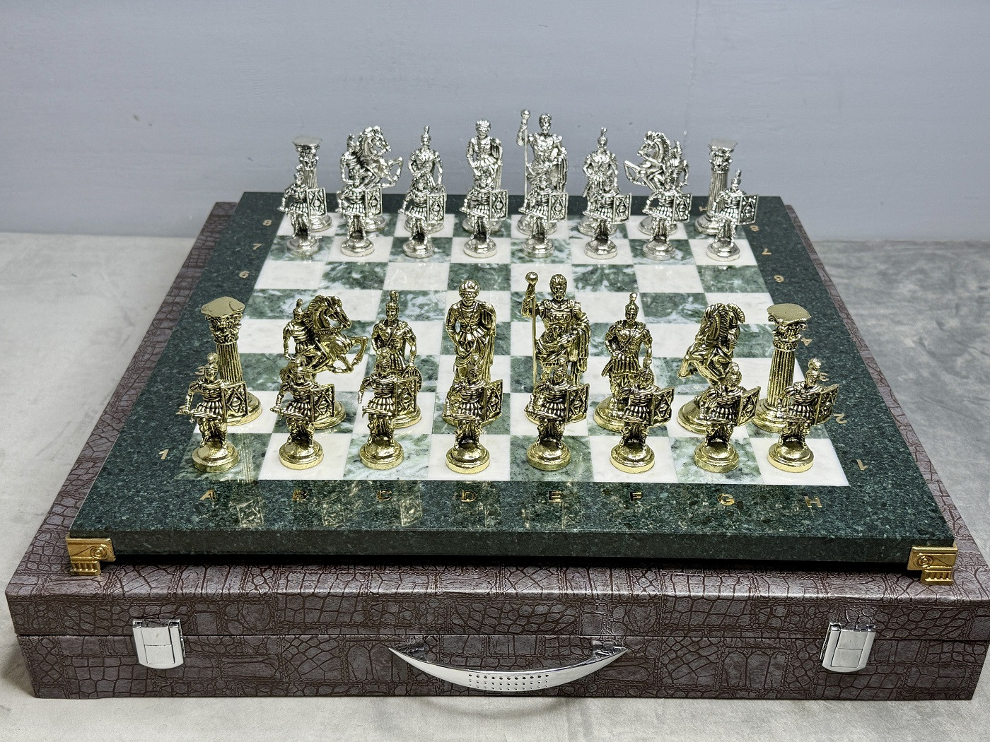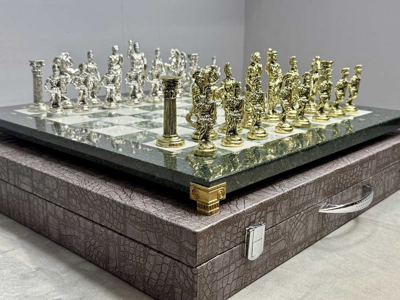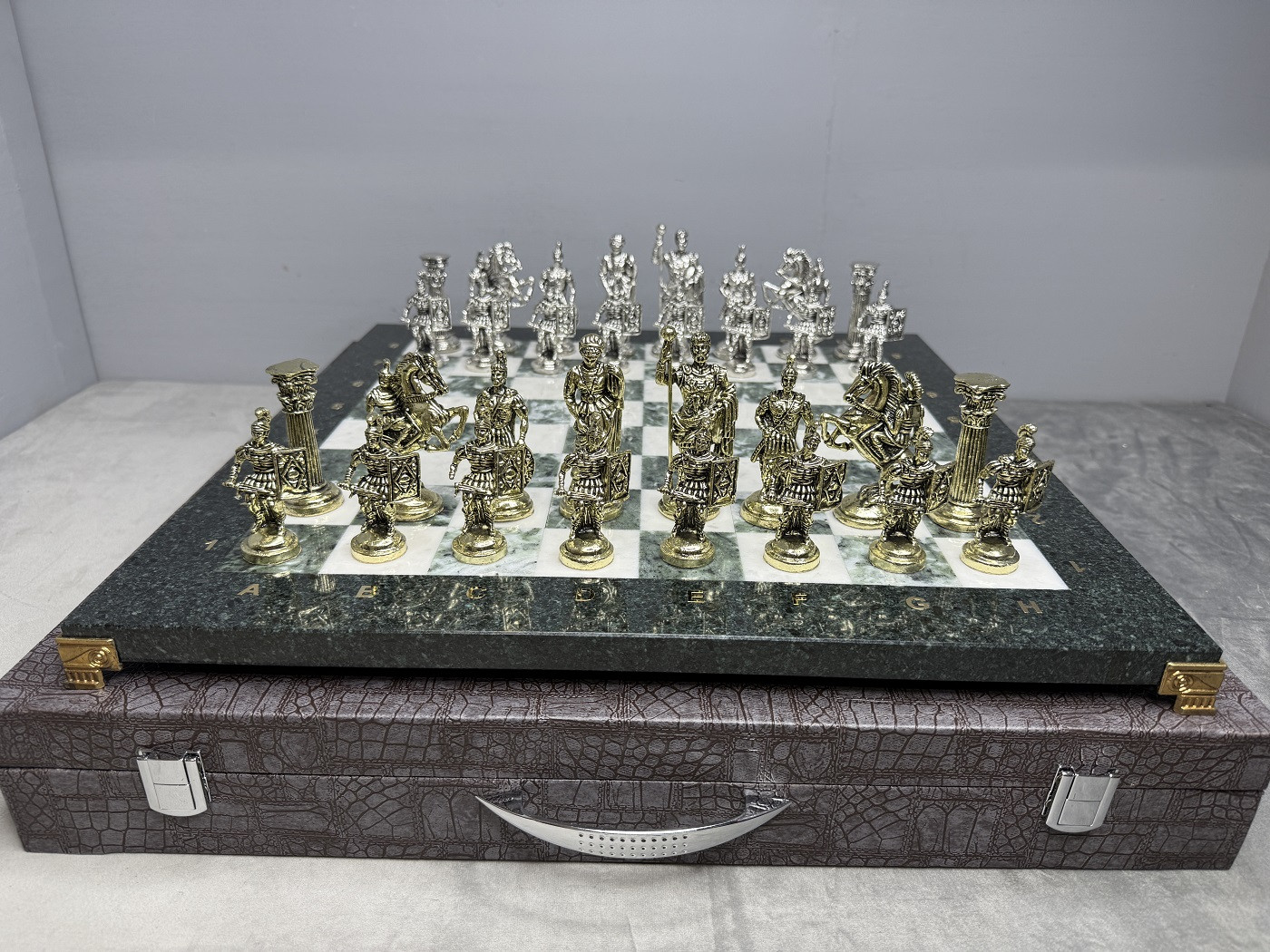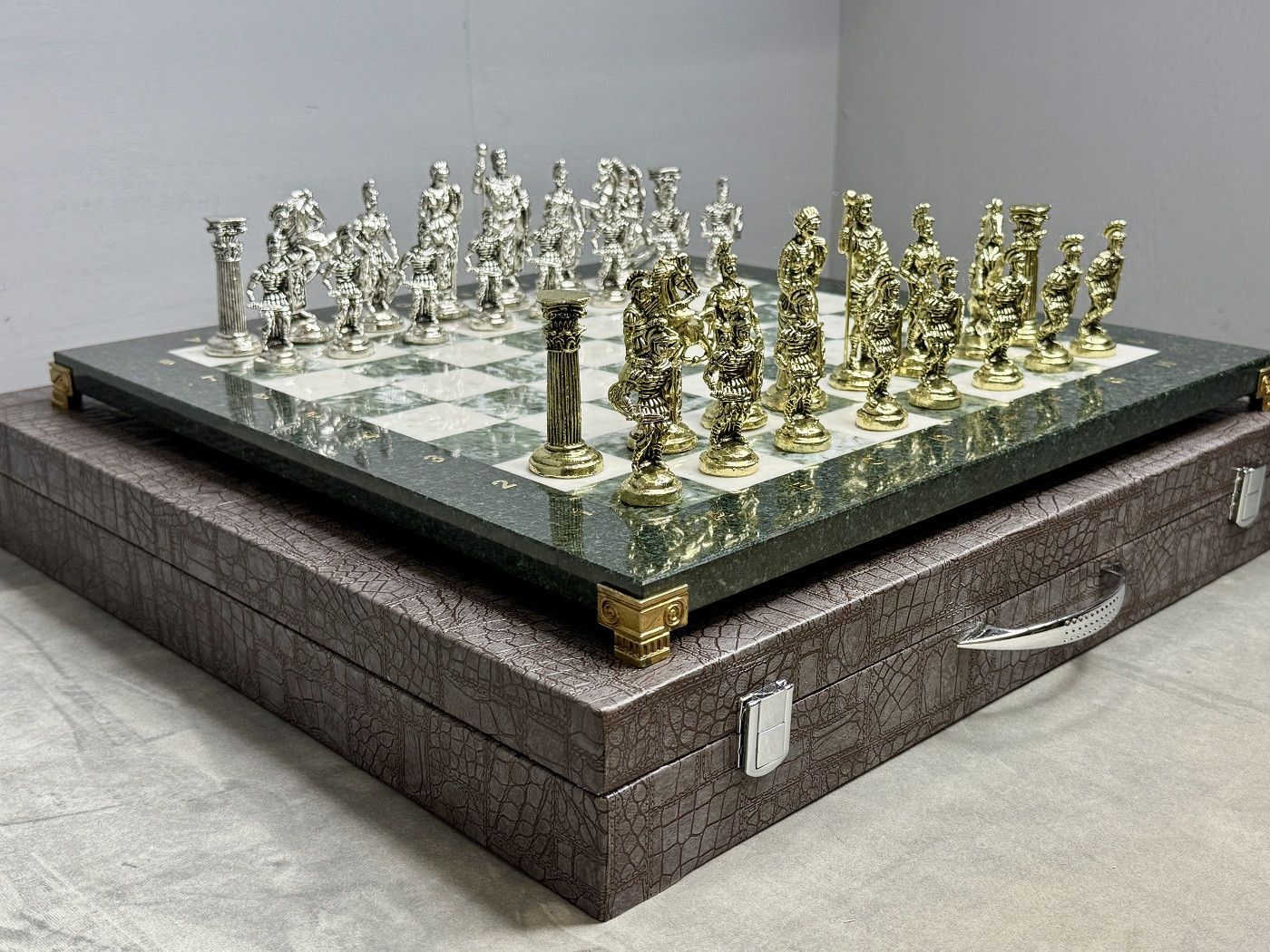 Шахматы каменные "Греция" доска 44х44 см камень мрамор