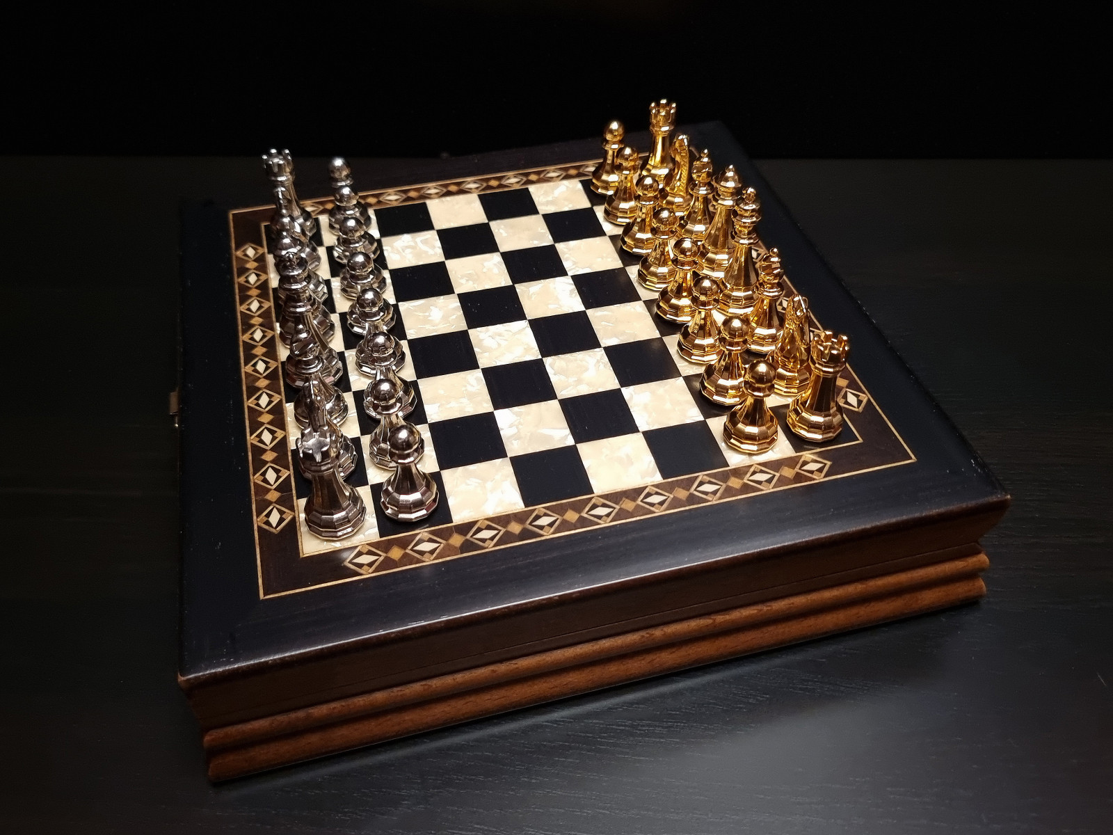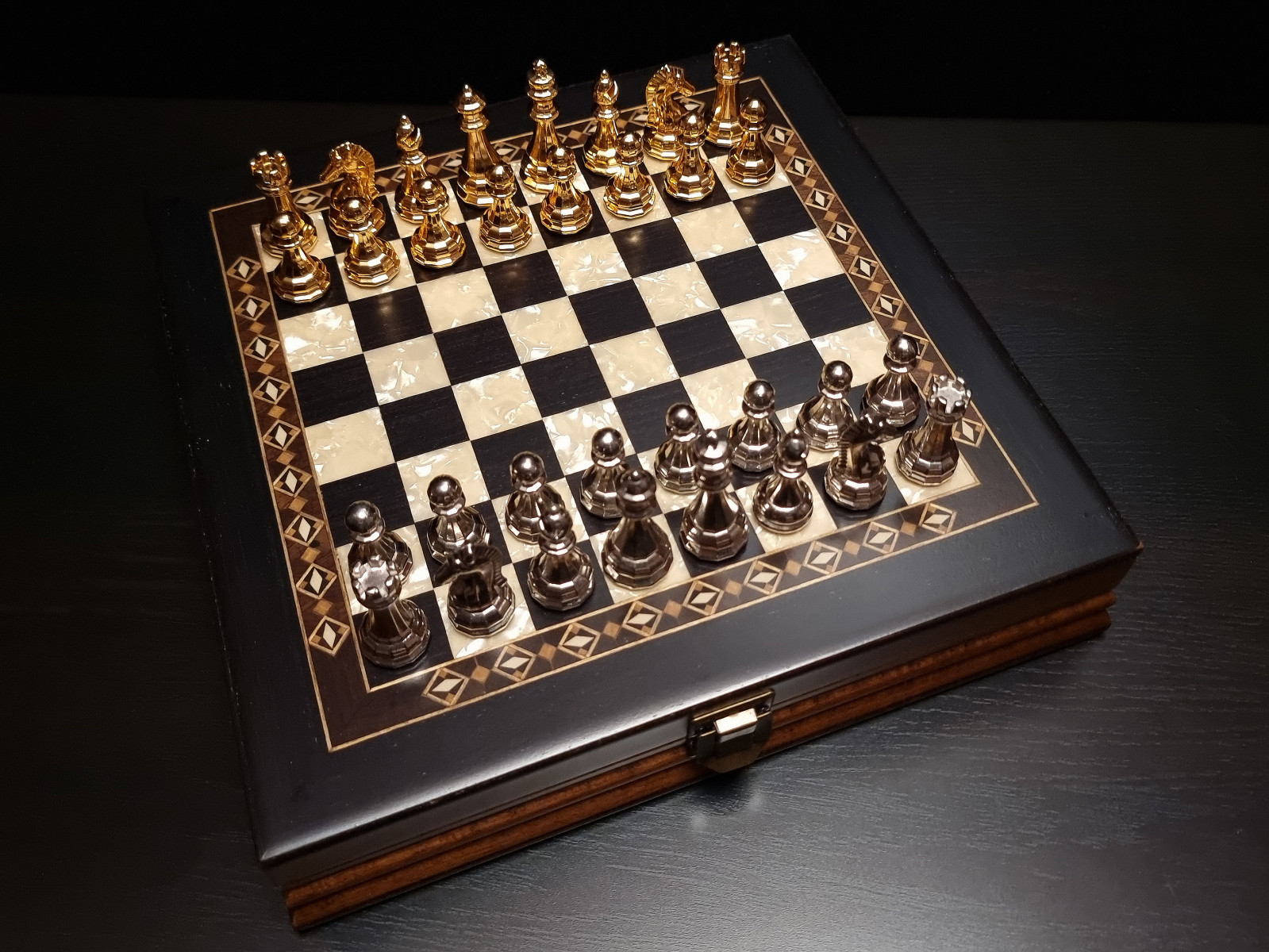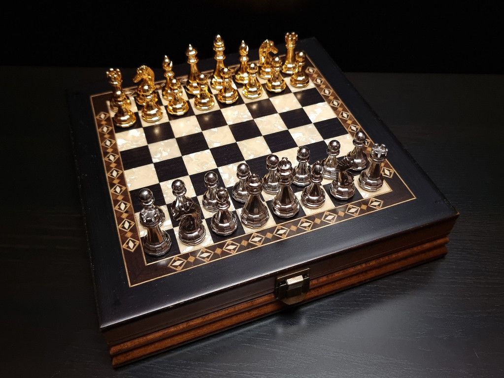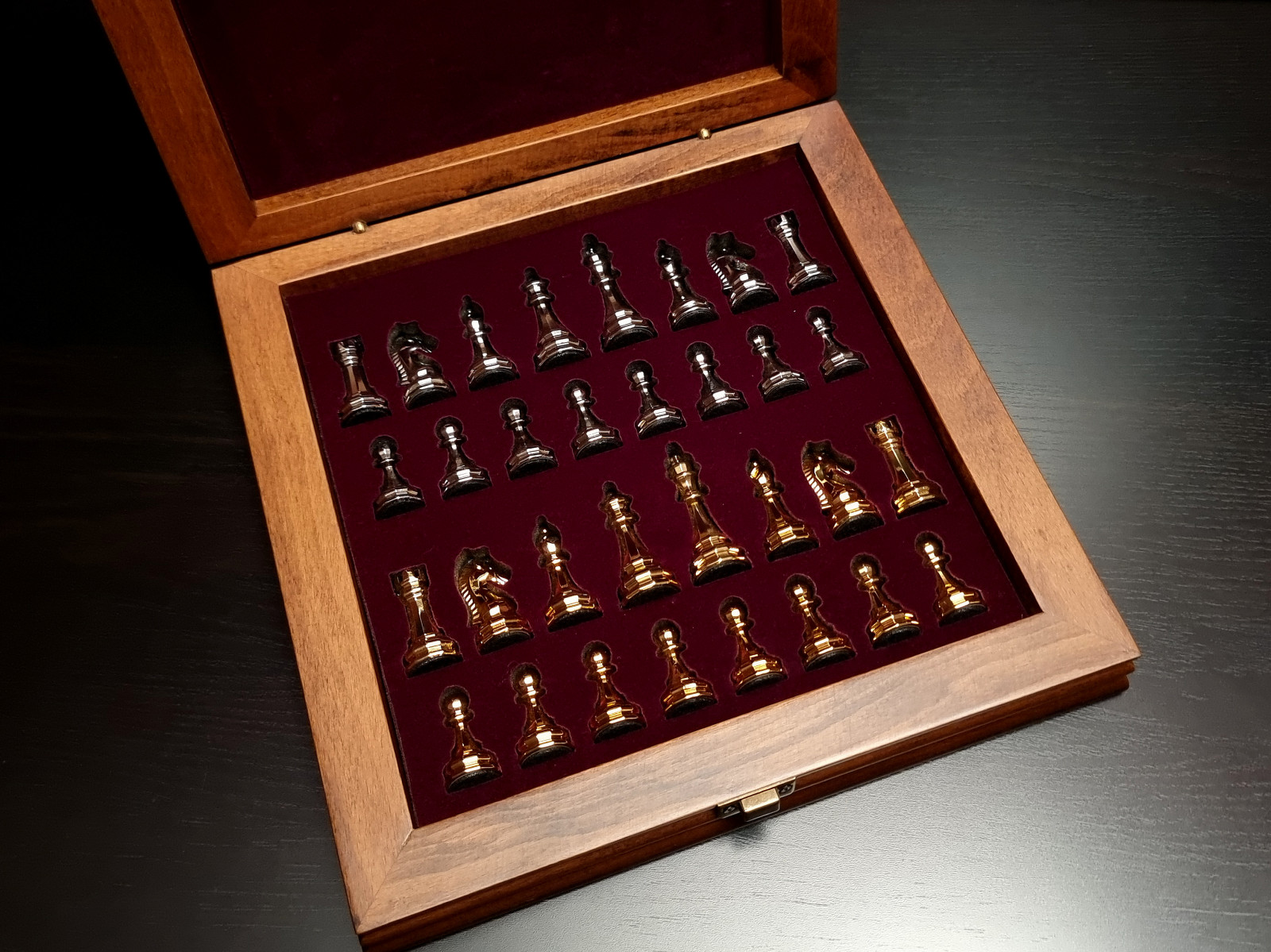 Шахматный ларец "Римское сражение" с фигурами из бронзы