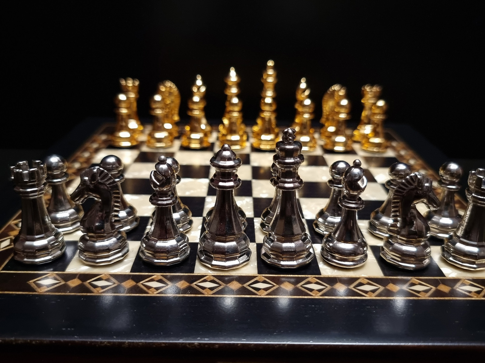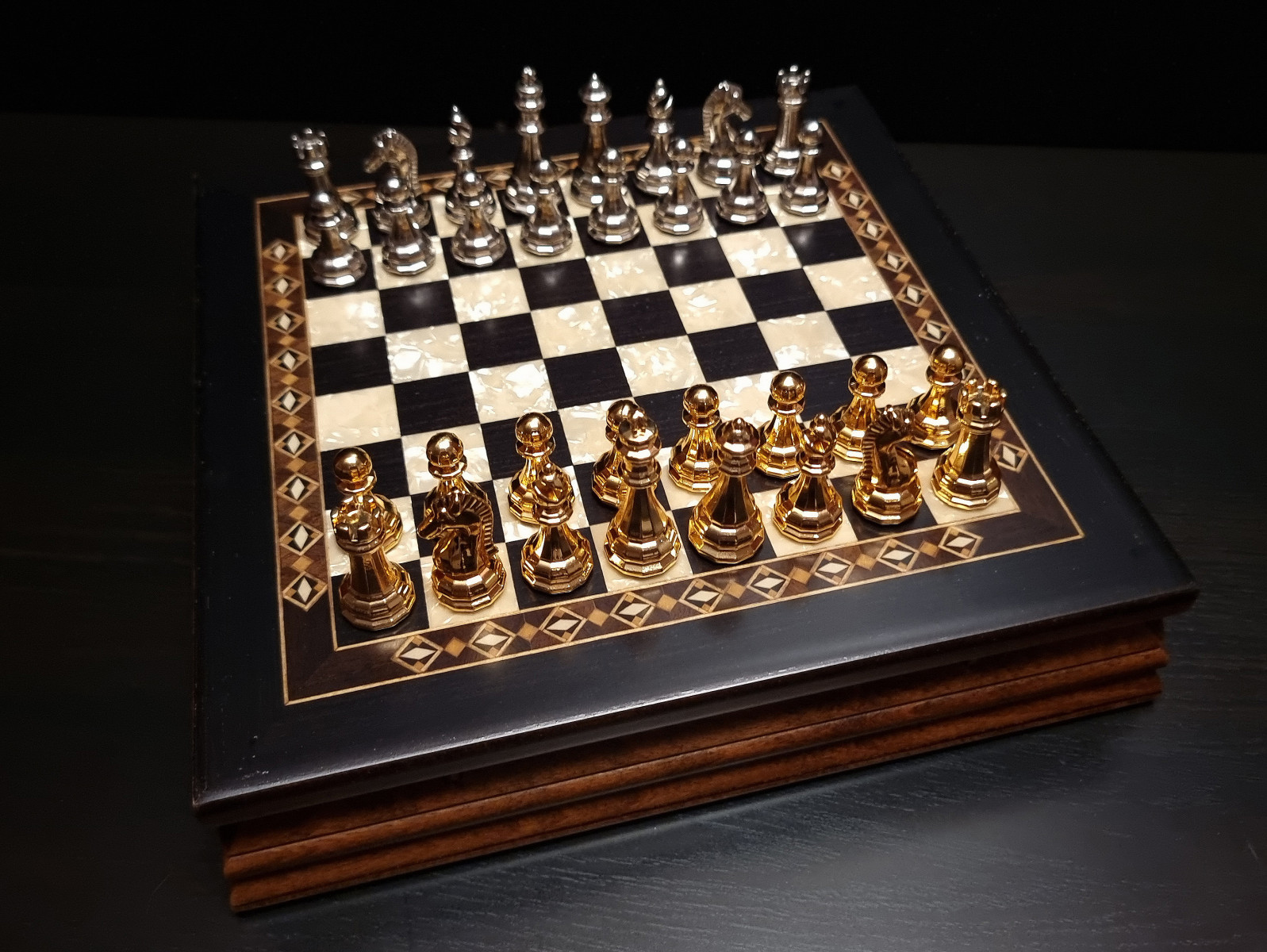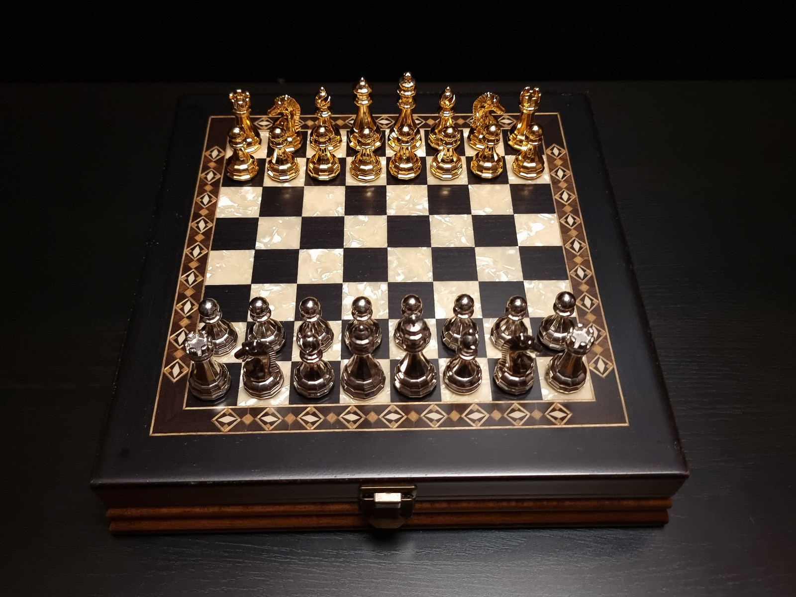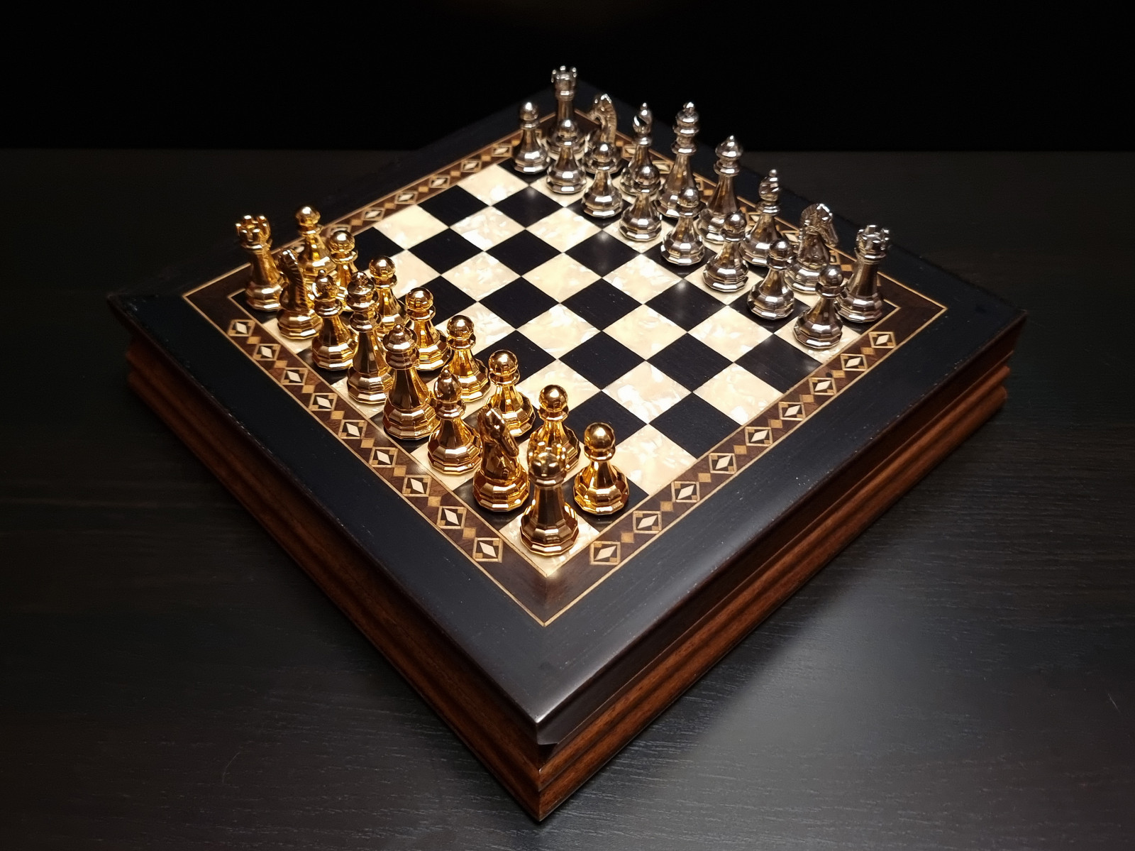 Шахматный ларец "Римское сражение" с фигурами из бронзы