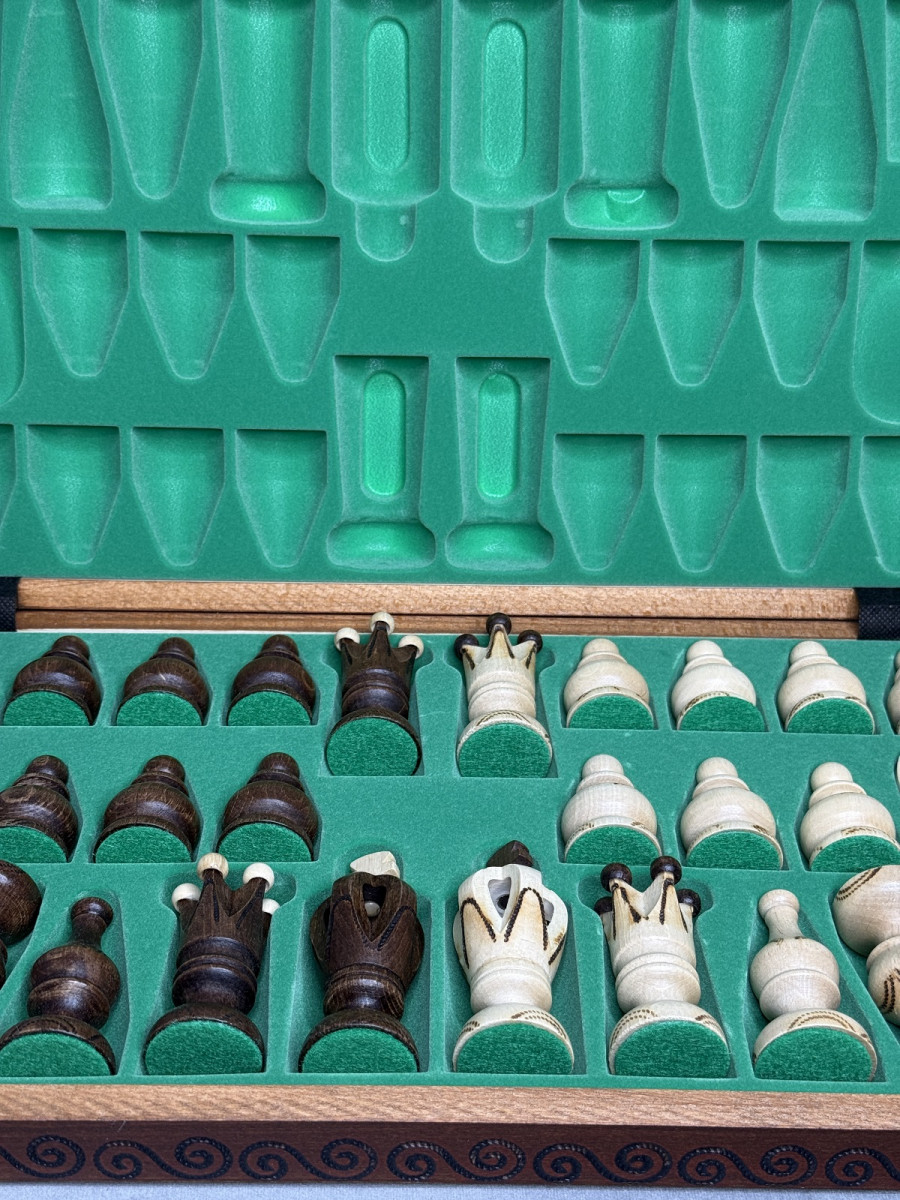 «Заказал комплект фигур Гроссмейстер, не ожидал что фигуры будут ровно такими как я их себе и представлял. Подбирал для своего сына 3.5 лет, хотелось, что то более менее похожее на шахматы. Всем очень ... [читать далее]доволен, сын в них влюбился. Я сам купил книжку для начинающих вот вместе и осваиваем.