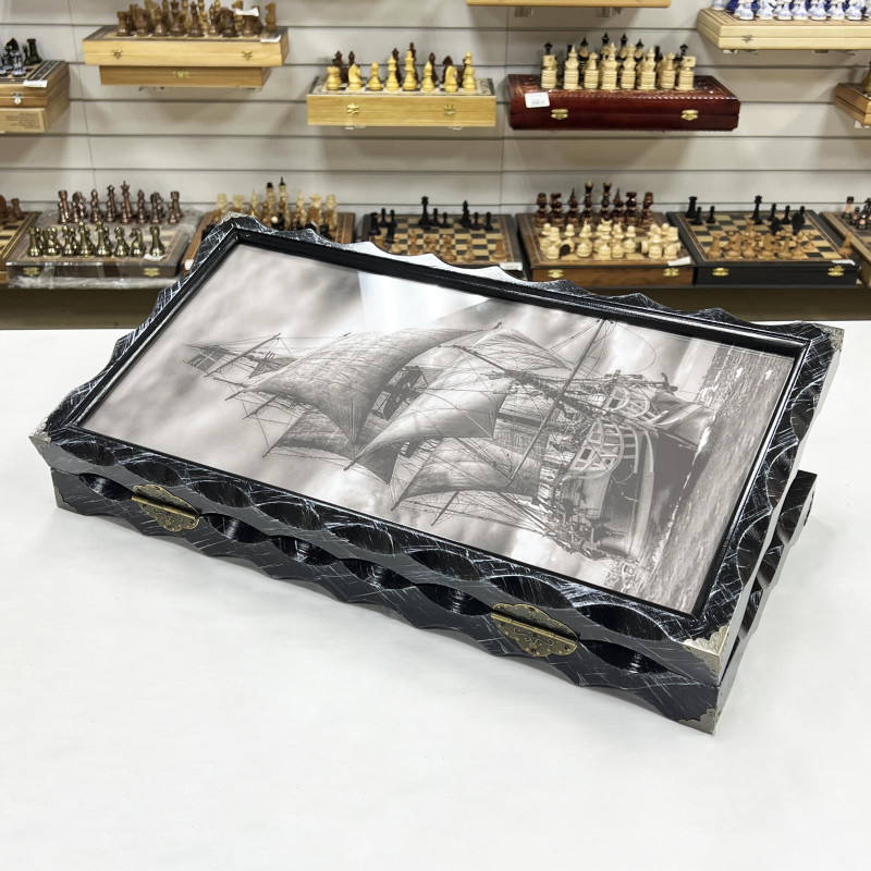 Нарды стеклянные «Призрачный корабль» 63 см с чехлом