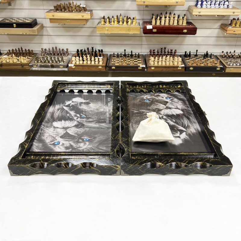 Купить нарды стеклянные Лев Стужи — изысканная ручная работа из массива липы и стекла с художественной печатью. Премиальный дизайн, благородный образ льва и высокое качество материалов делают этот набор идеальным подарком и стильным украшением любой коллекции.
