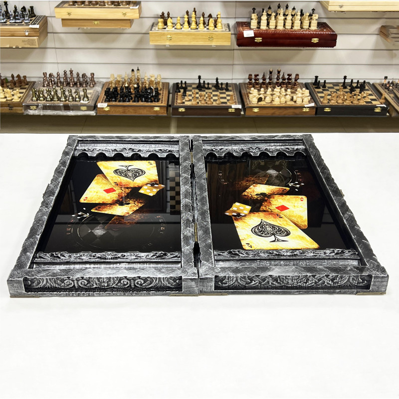 Благодаря стеклянной поверхности рисунок выглядит особенно выразительно — свет подчеркивает глубину изображения. Нарды прочные, долговечные и удобные в использовании, подходящие как для игры, так и для презентабельного подарка.