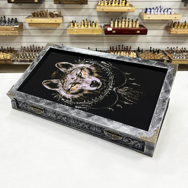 Нарды стеклянные эксклюзив «Ночной Волк» — мистический подарок для ценителей