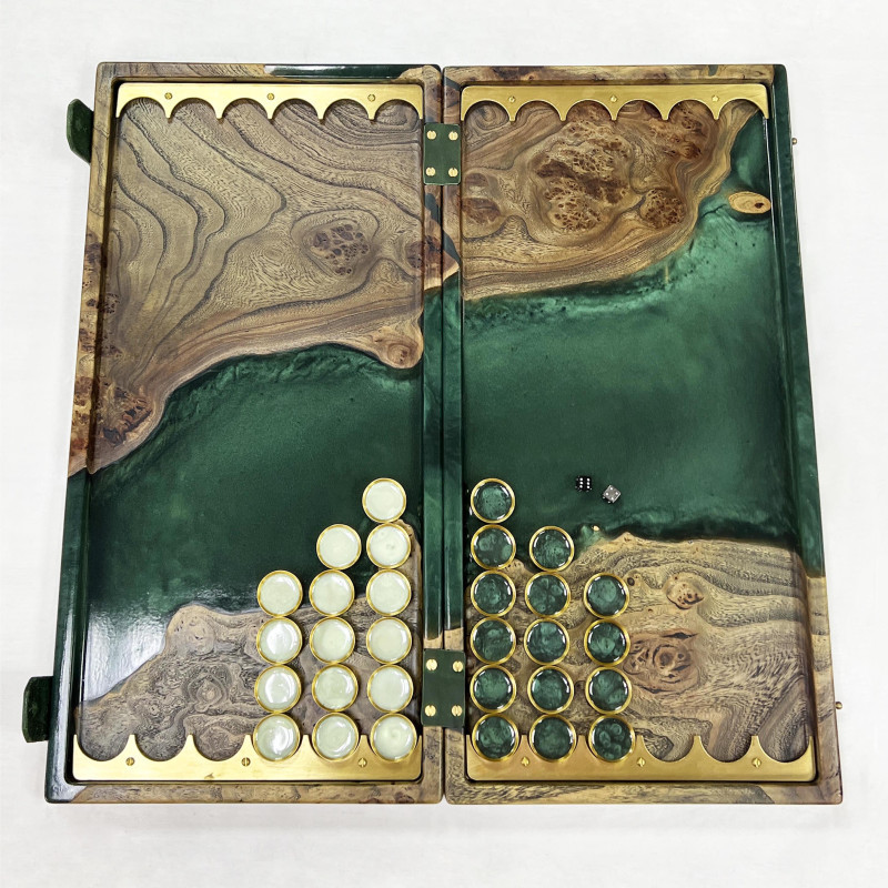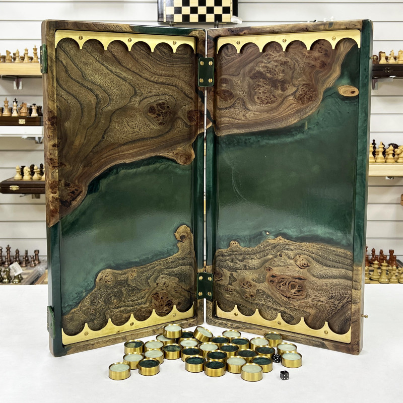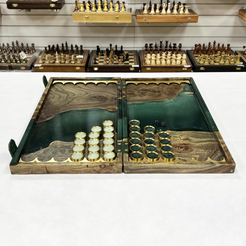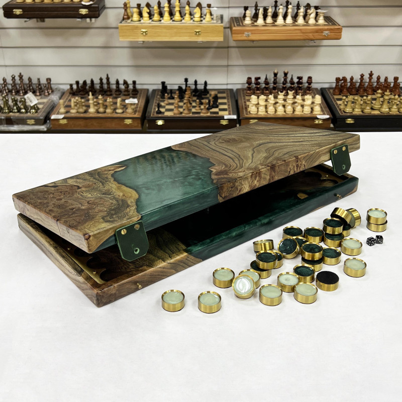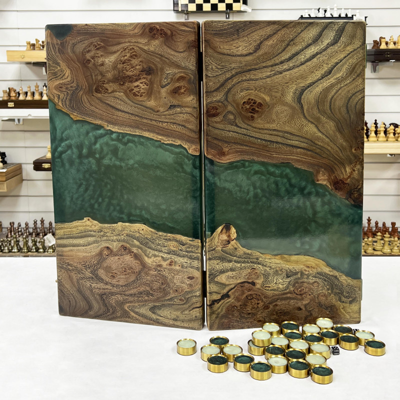 Нарды подарочные из эпоксидной смолы «Изумрудная гармония»