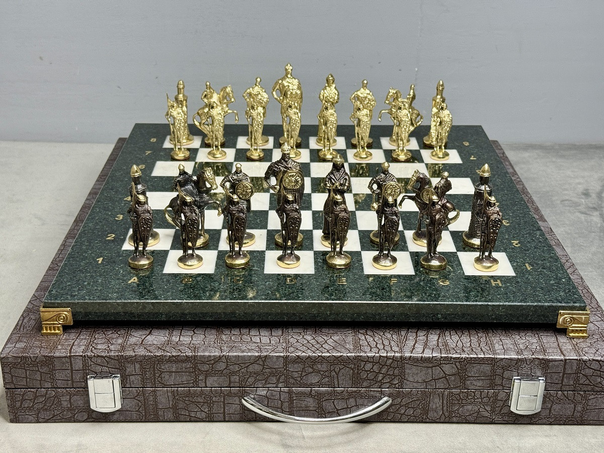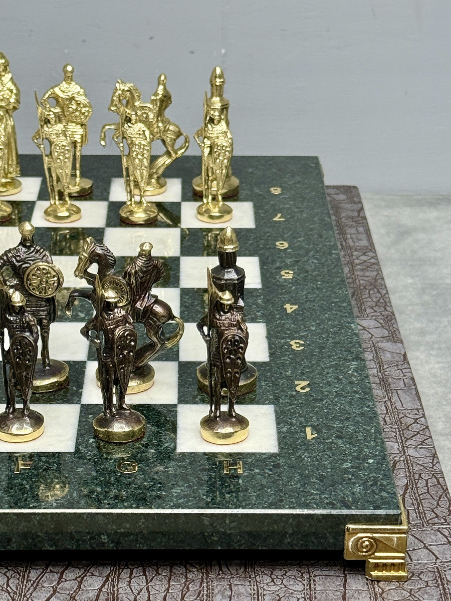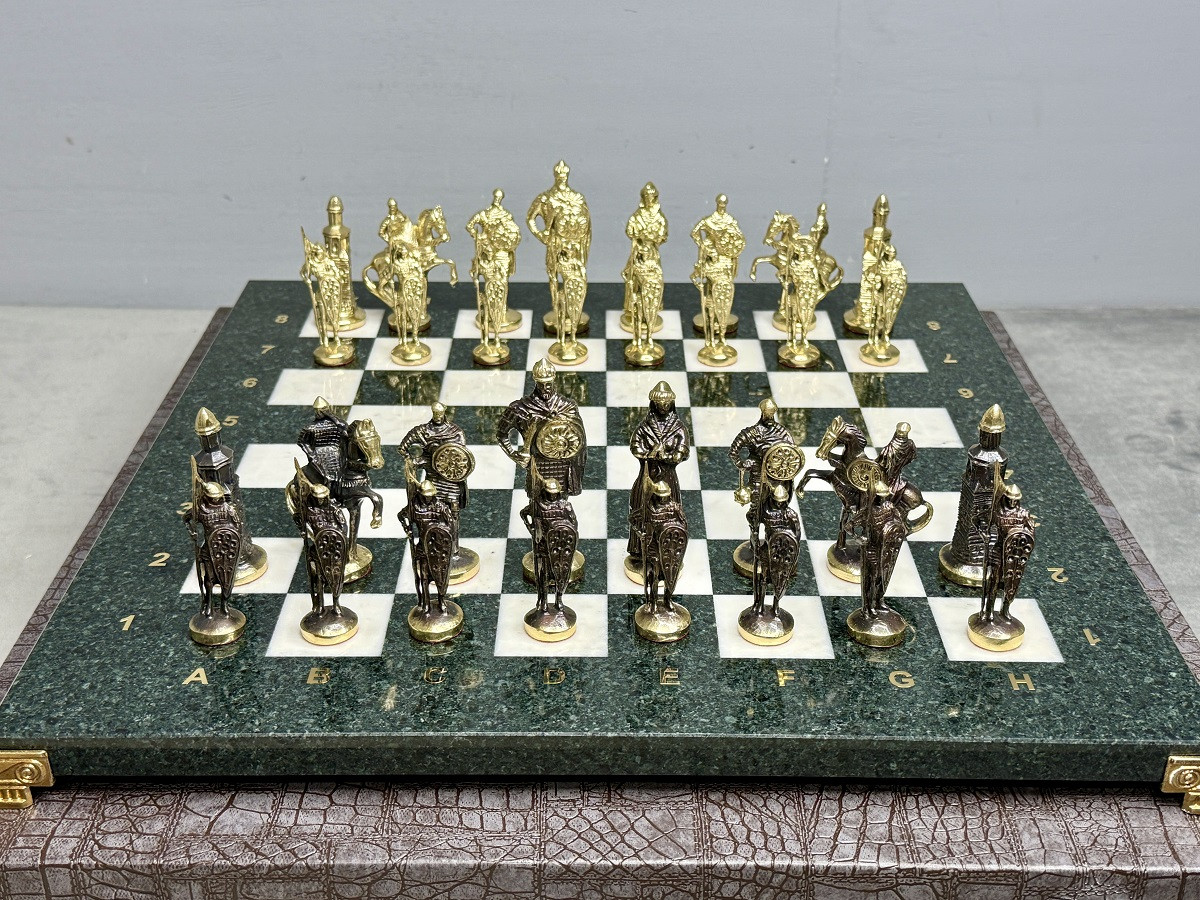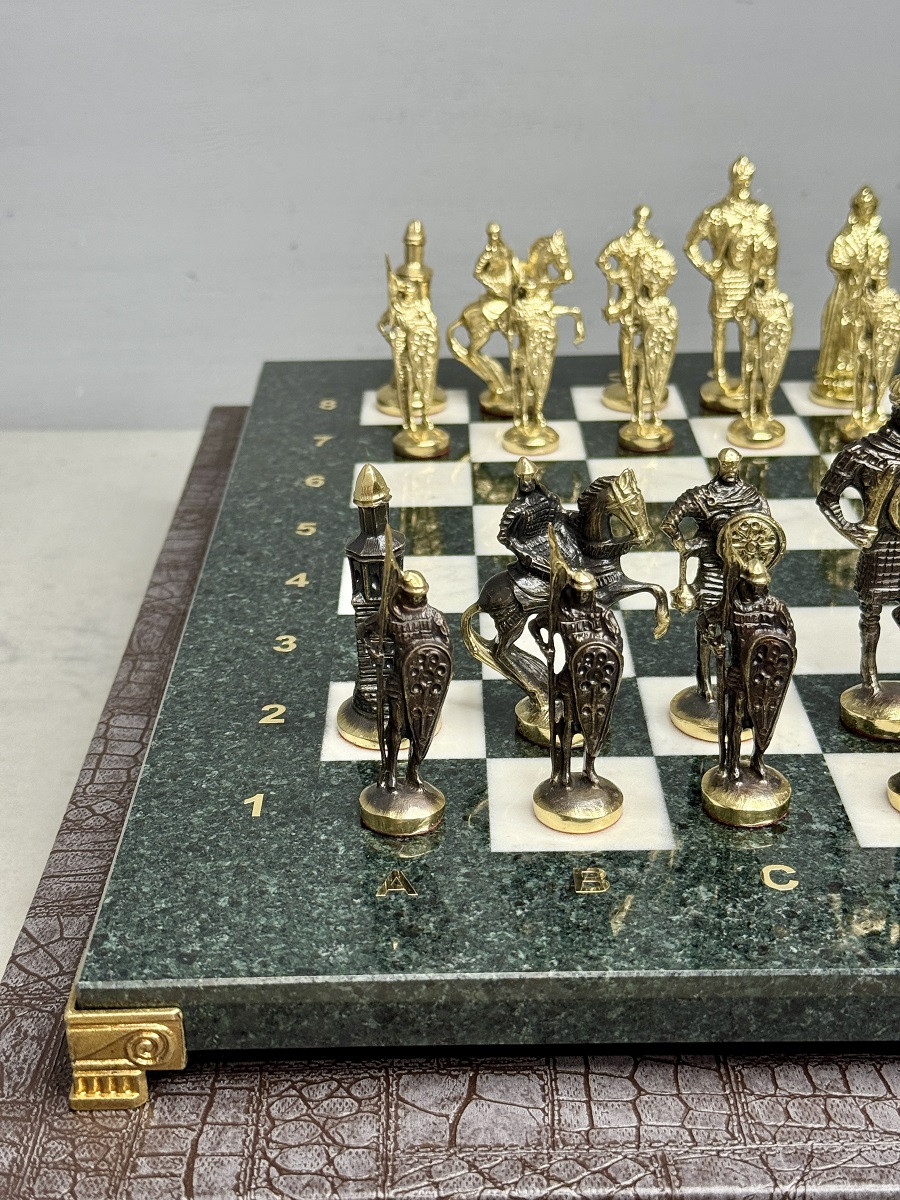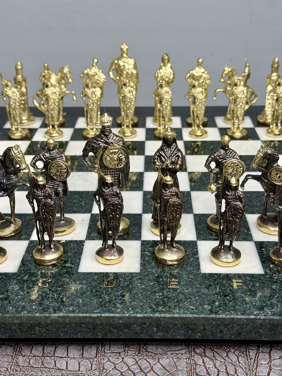 Шахматы из камня "Македонская битва" доска змеевик 40х40 см