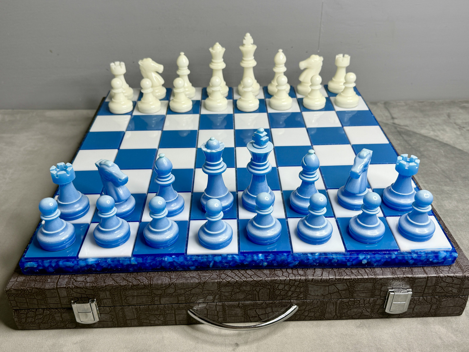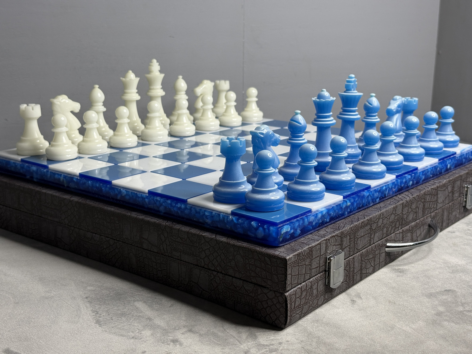 Шахматы светящиеся из эпоксидной смолы "Ледяная магия"