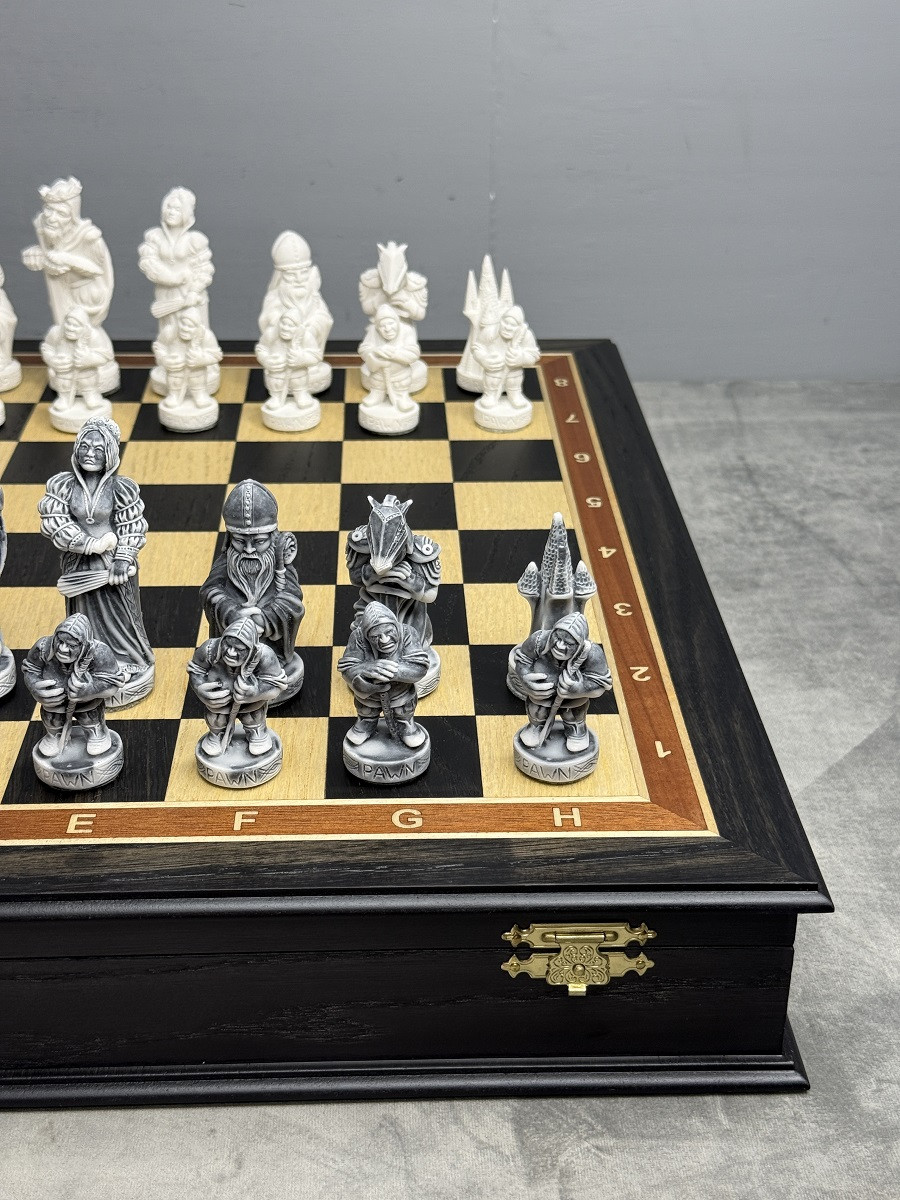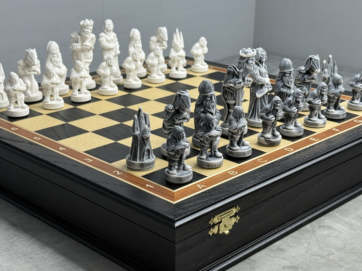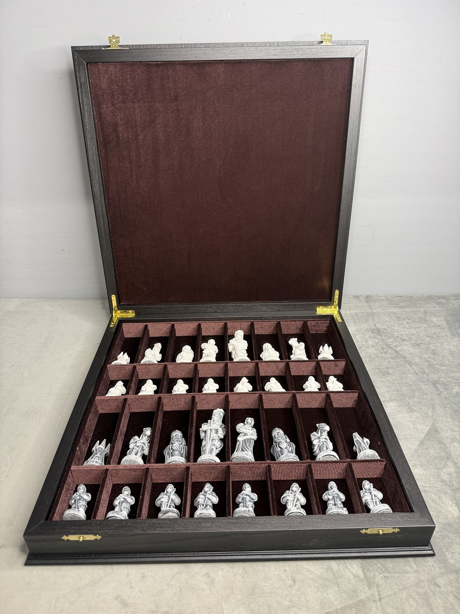 Этот набор станет эффектным украшением интерьера, а также прекрасным подарком для коллекционеров, любителей истории и ценителей премиальных шахмат.