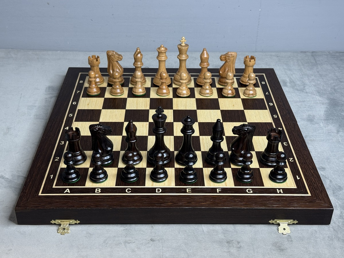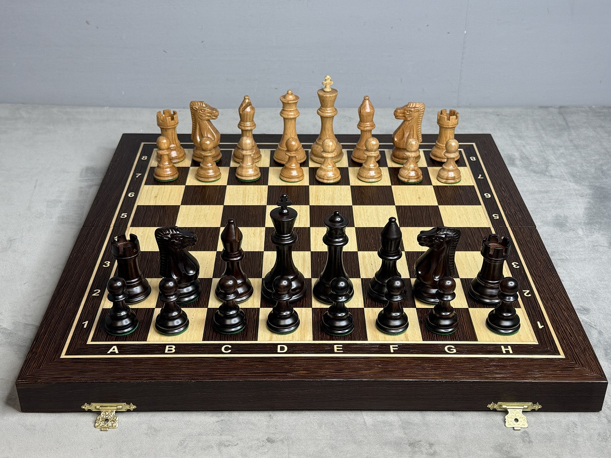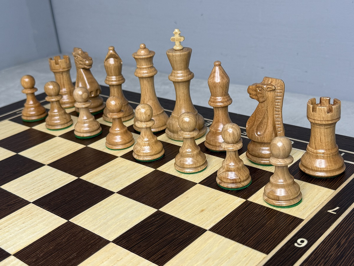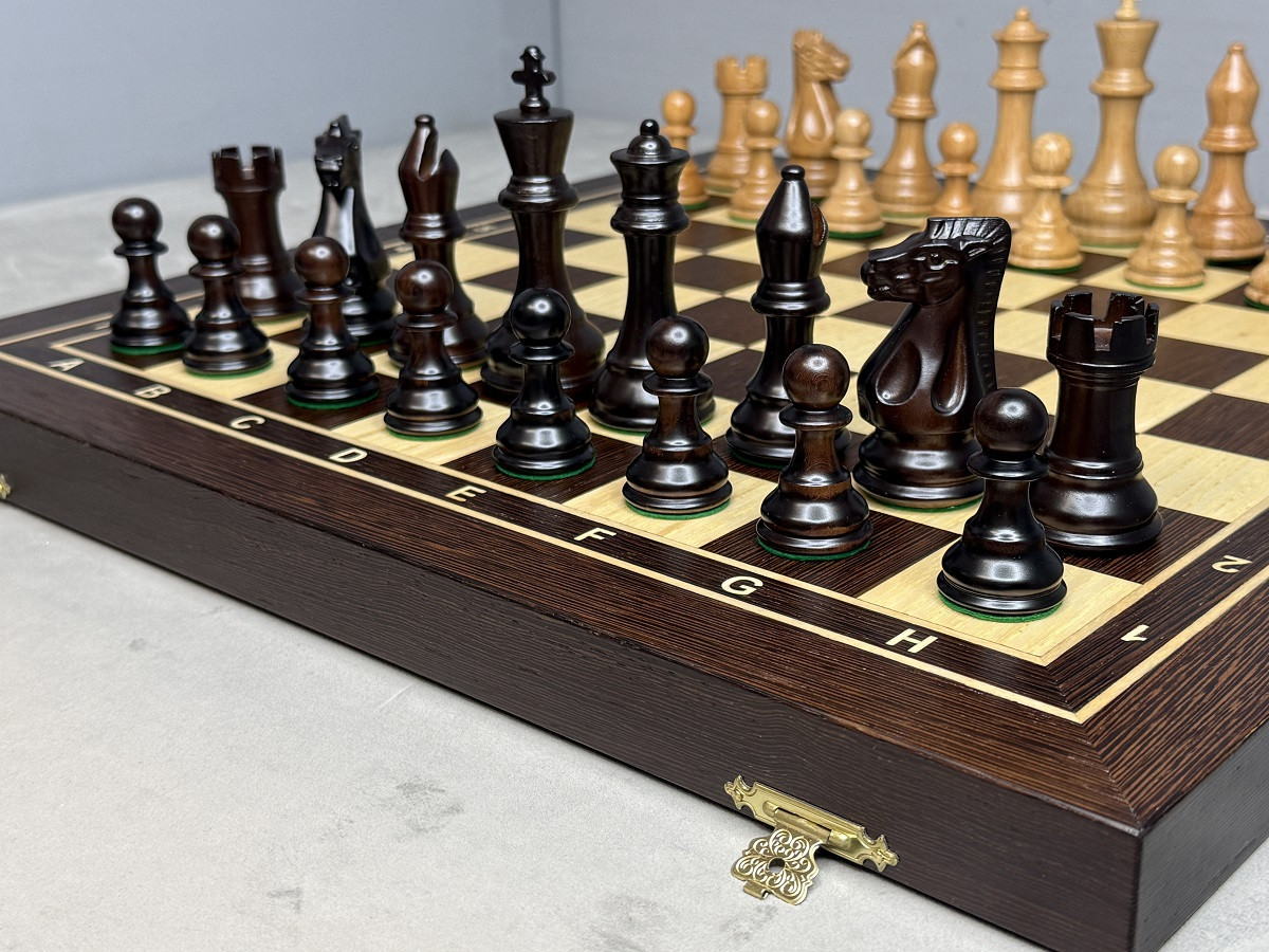 Идеальный набор для настоящих ценителей шахмат! Доска из массива дуба с клетками: светлая – ясень, тёмная – дуб. Классические фигуры с утяжелением, высота короля 10 см, пешки 5 см. Техника ручной работы – маркетри. Отлично подходит в подарок, для коллекции или турнирной игры. Доставка по Москве и всей России.