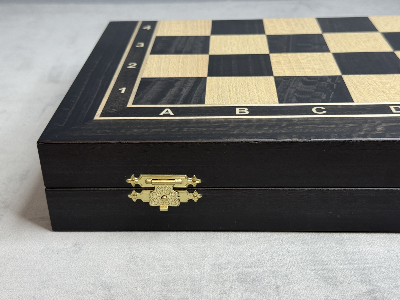 Доска выполнена вручную из массива морёного дуба. Светлая клетка сделана из ясеня, благодаря чему игровое поле смотрится контрастно и выразительно. Размер доски 45×45 см — оптимальный формат для комфортной игры дома и в кабинете.