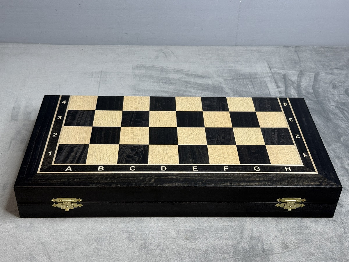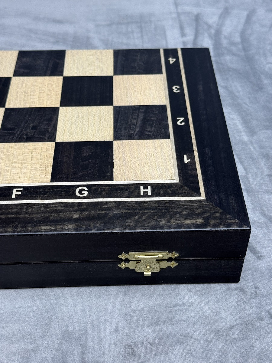 Складной формат делает доску удобной для хранения и перевозки. Внутри предусмотрено пространство для хранения шахматных фигур, что позволяет использовать её как практичный ларец. Такая конструкция особенно удобна, если вы планируете часто брать шахматы с собой или хранить комплект в идеальном порядке.