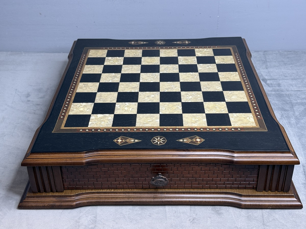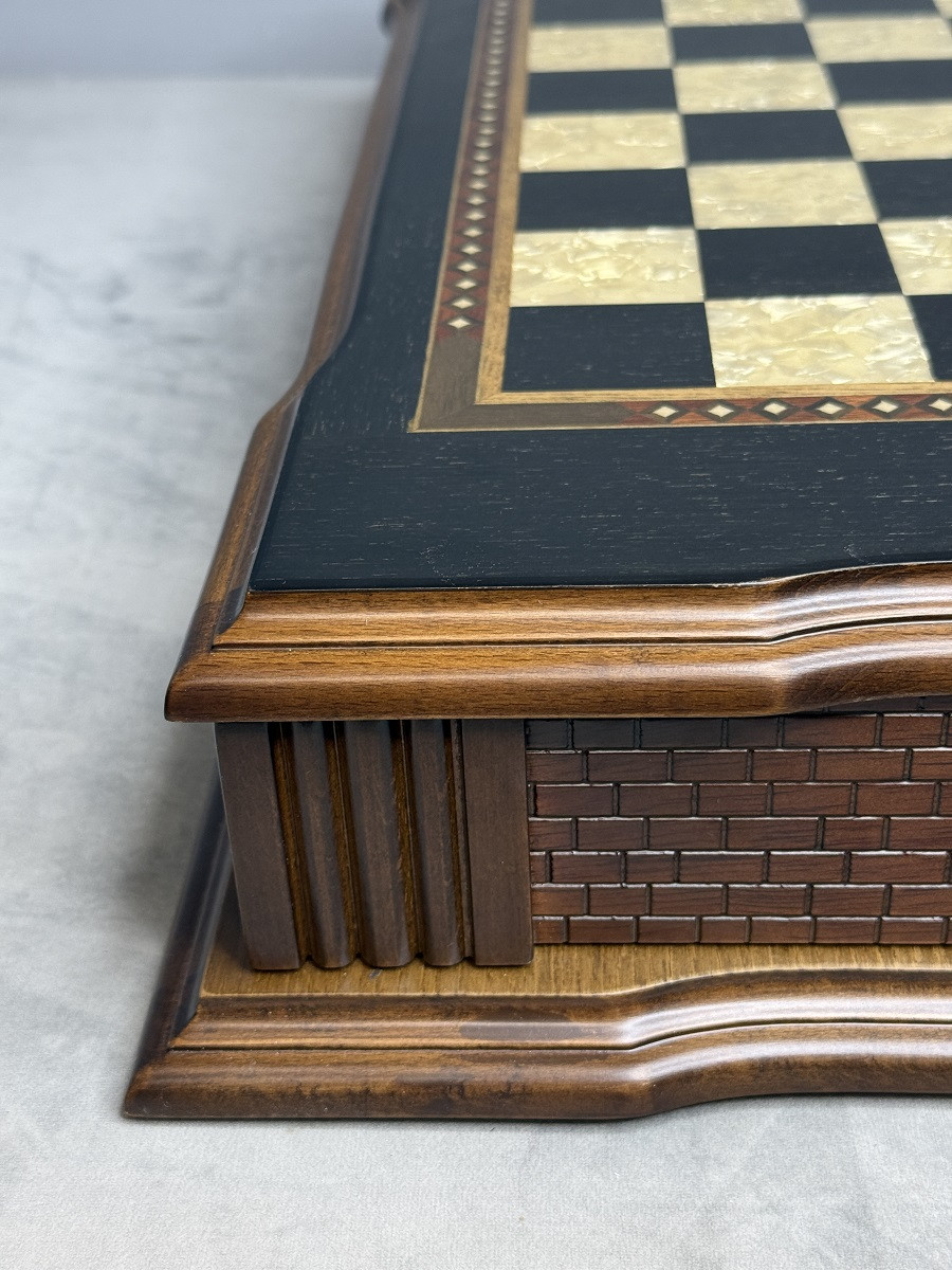Роскошный ларец оснащён встроенными ящиками для хранения фигур, что обеспечивает порядок, защиту от повреждений и удобство использования. Дополнительно предусмотрена фирменная сумка-чехол для транспортировки.