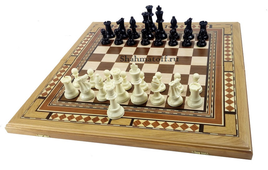 Техника выполнения и обработки фигур: шахматные фигуры изготовлены из высококачественного пластика, каждая фигура имеет приятное войлочное основание, что обеспечивает сохранность игрового поля и бесшумное передвижение фигур по нему.