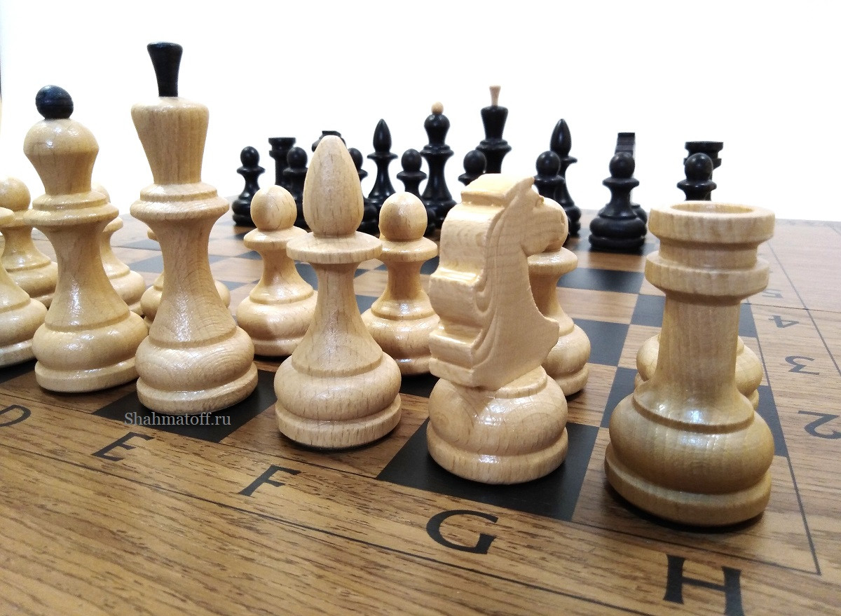 Специфика выполнения фигур: шахматные фигуры изготовлены из бука и покрыты полуматовым лаком, что помогает избежать бликов при игре. Бархатная подклейка на каждой фигуре и фишках добавит удовольствие в процессе игры, а также сохранит поверхность игрового поля для шахмат и нард.