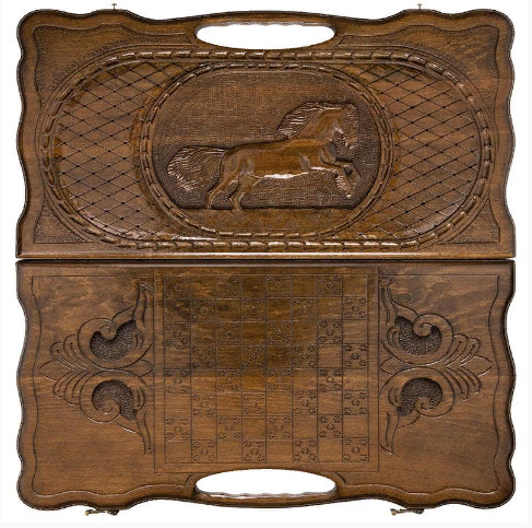 Нарды резные "Лошадь" с ручкой 60, Haleyan