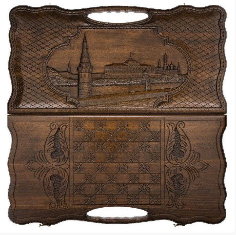 Нарды резные "Кремль" с ручкой 60, Haleyan