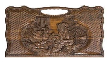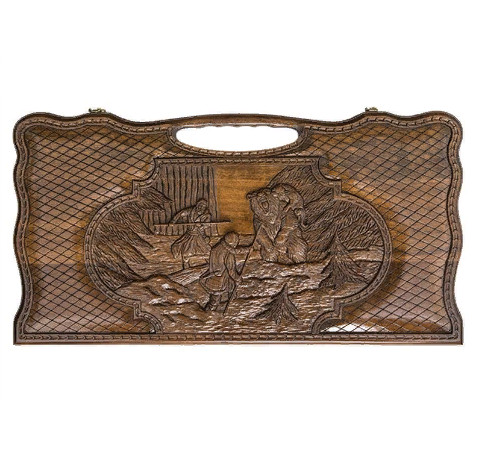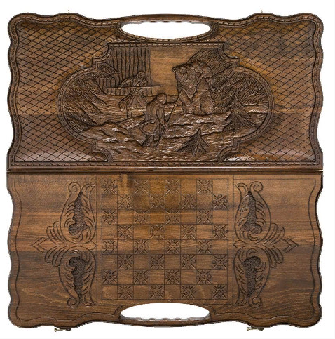 Нарды резные "Охота на медведя" с ручкой 60, Haleyan