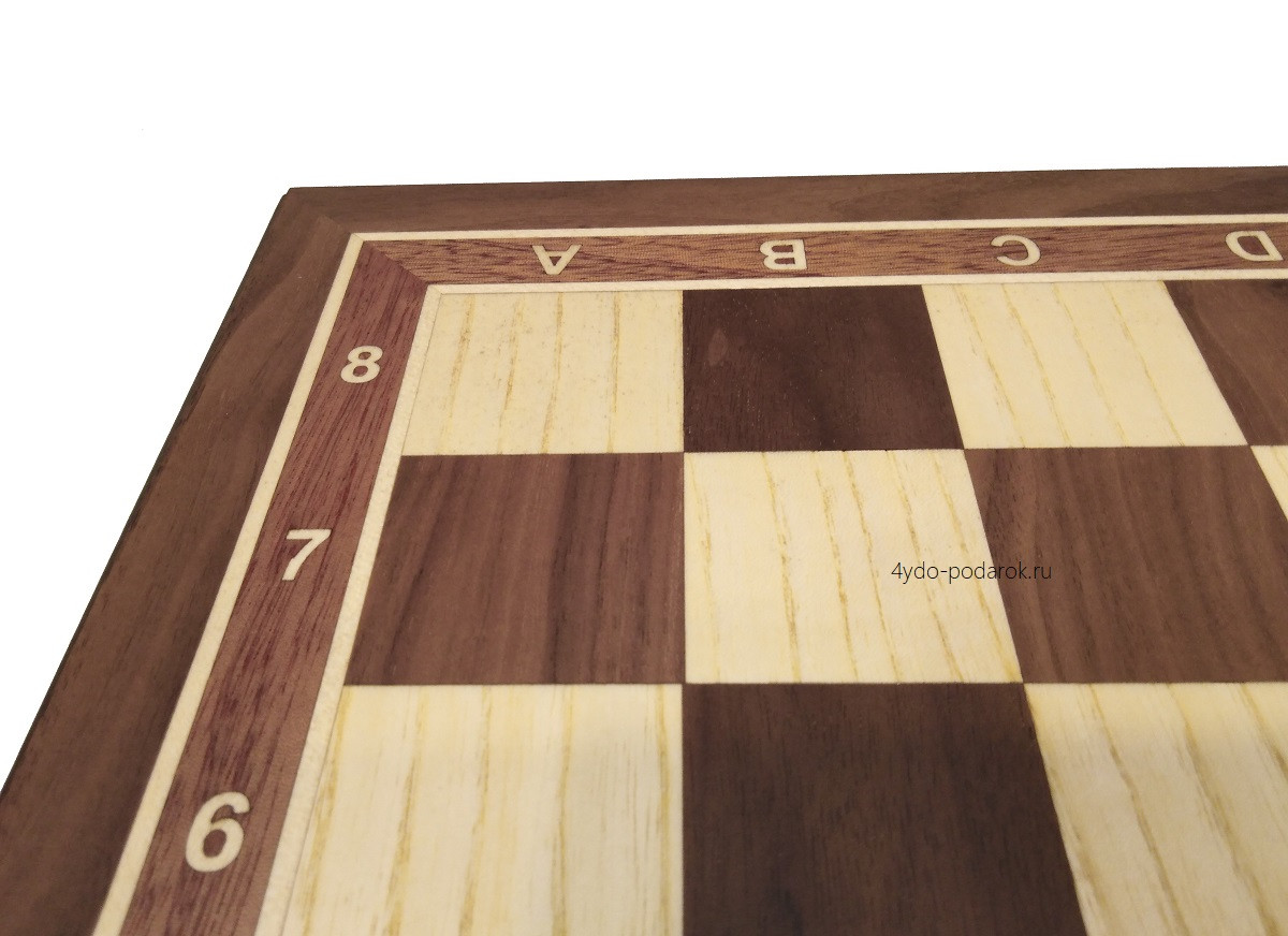 Никакой цветной печати - каждый элемент доски, будь то клетка, цифры или буквы, а также поля выполнены в технике маркетри (ручной набор композиции шпоном контрастных пород).