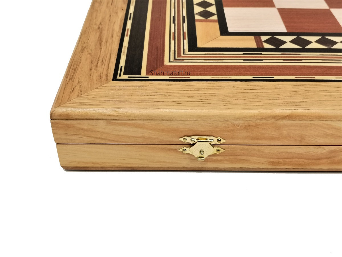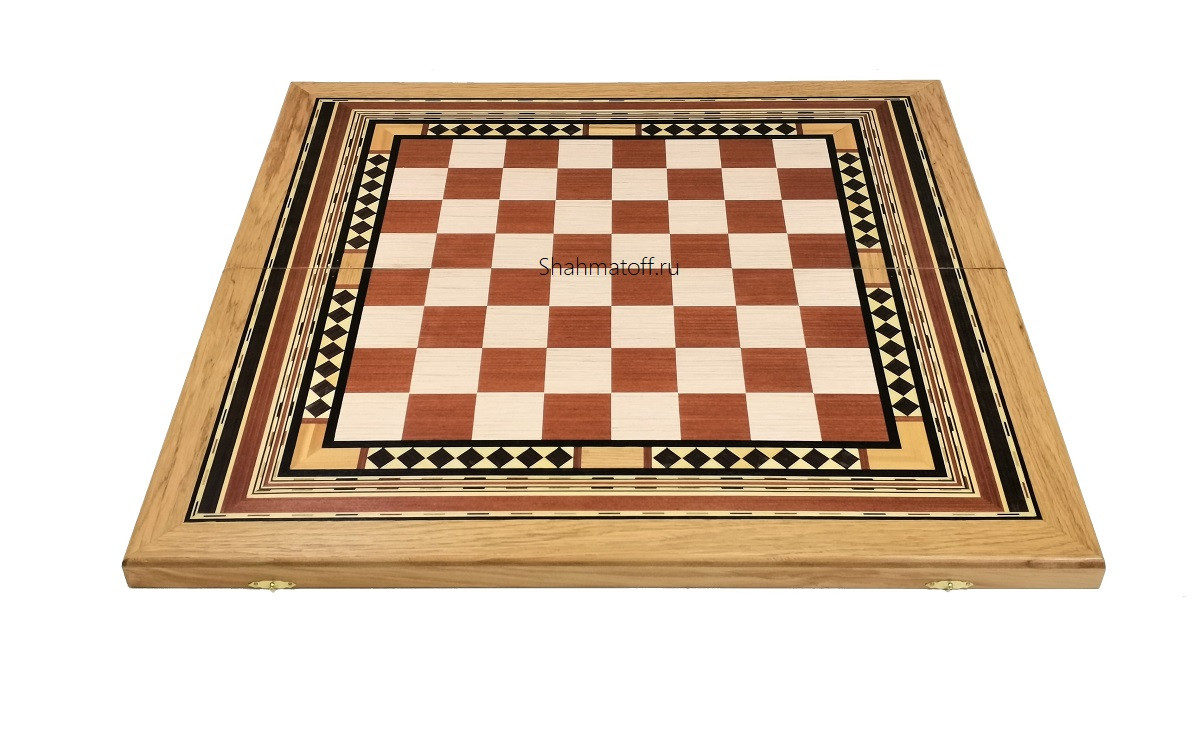 Специфика выполнения доски: Внешняя и внутренняя поверхность доски выполнена путём инкрустации ценными породами дерева (макоре, клён, махагон), надёжные петли и замочки из нержавеющей сувенирной стали.