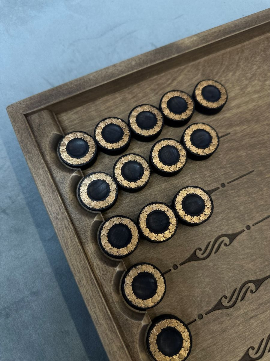 Нарды "Водный дракон" чёрные золото. Фишки ручной работы