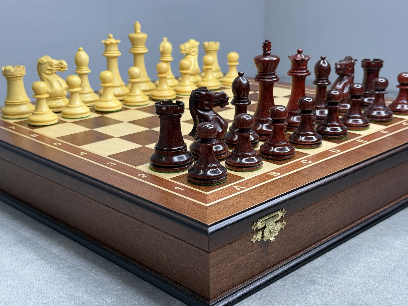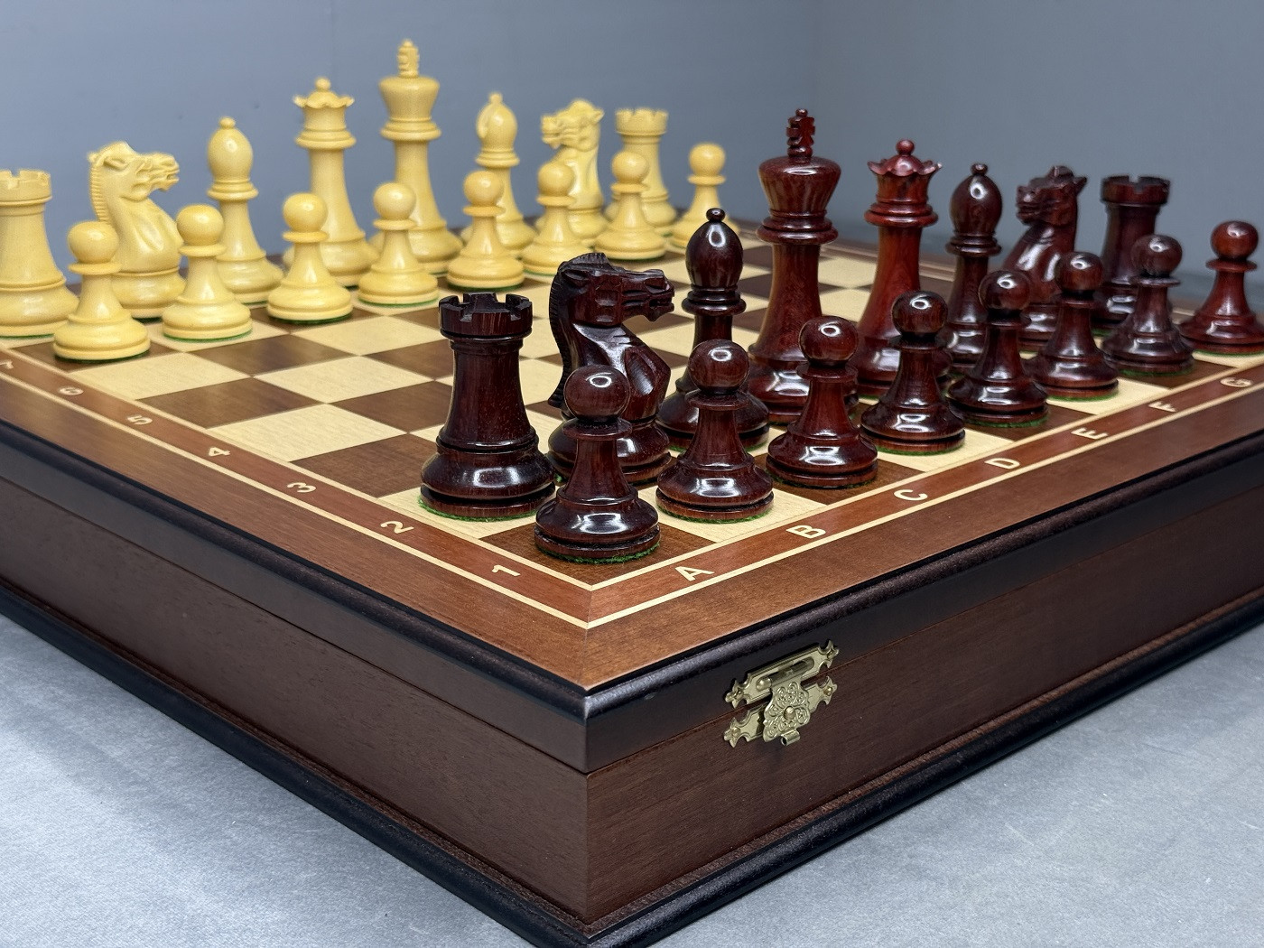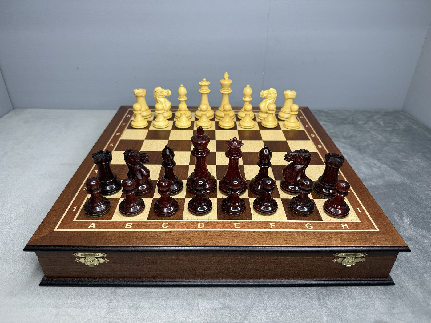 Решили купить шахматы?Шахматы деревянные подарочные в ларце являются достойным подарком мужу,брату,другу,парню,отцу,маме,сестре,жене,ребенку на любой праздник,а именно: Новый год, день рождения,юбилей,новоселье,23 февраля, 8 марта,Рождество и т.д. Шахматный ларец - это увлекательная логическая игра для всей семьи. Настольная игра для взрослых с шахматными фигурами из клена, на деревянной доске смотрится очень эффектно и дорого.Бесшумная постановка утяжеленных фигур, подклеенных бархатом, доставит истинное наслаждение при игре. Сохранность каждой шахматной фигуры обеспечит бархатный ложемент внутри доски, а потому будет хорошим подарком любимым и близким. Шахматы турнирные это игра для двоих, но также можно играть парами в небольшой компании. Поиграйте в шахматы со своим ребенком. Развивающая игра для мальчиков и девочек отлично тренирует мышление, память, логику, учит предсказывать стратегию игрока. Игра настольная шахматы понравятся тем, кто играет в стратегические настольные игры для детей и взрослых такие, как монополия, эрудит, мафия, нарды, дженга, шашки. Шахматы популярная стратегическая игра интеллектуальная во всем мире. Красивые подарочные шахматы - это подарок не на один год, они будут передаваться из поколения в поколение.