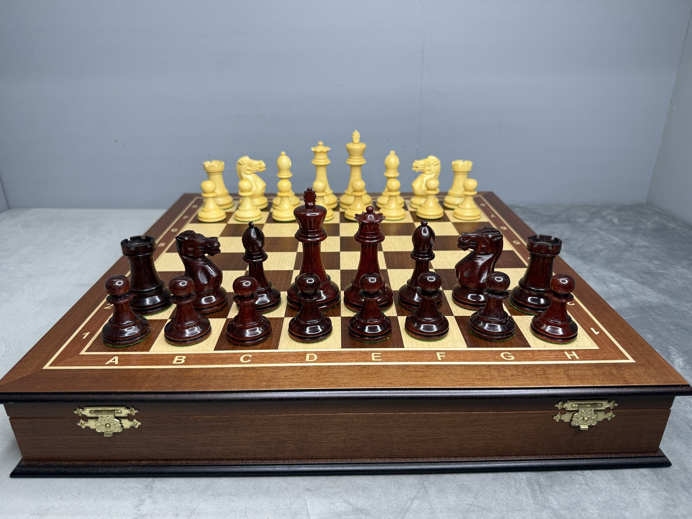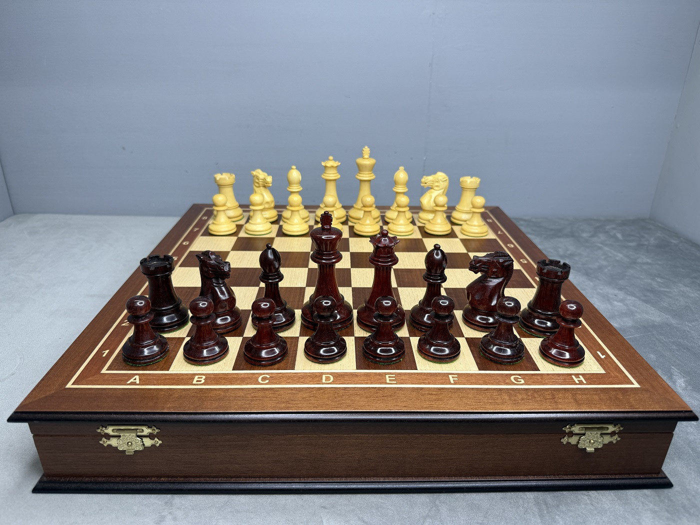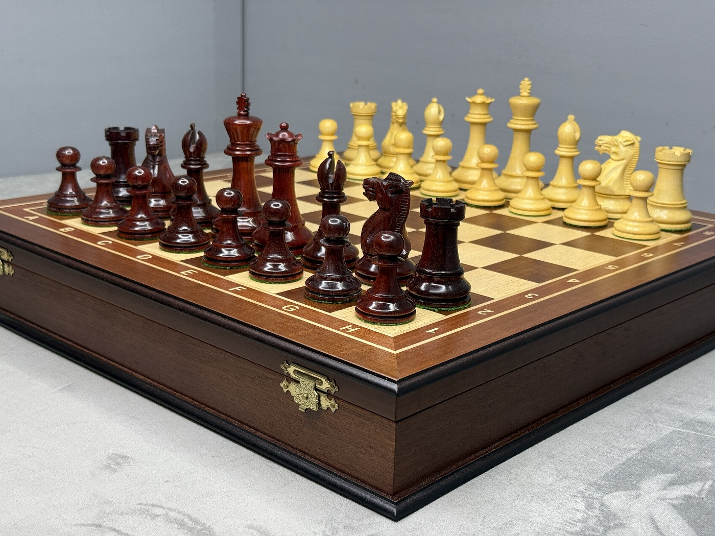 Решили купить шахматы?Шахматы деревянные подарочные в ларце являются достойным подарком мужу,брату,другу,парню,отцу,маме,сестре,жене,ребенку на любой праздник,а именно: Новый год, день рождения,юбилей,новоселье,23 февраля, 8 марта,Рождество и т.д. Шахматный ларец - это увлекательная логическая игра для всей семьи. Настольная игра для взрослых с шахматными фигурами из клена, на деревянной доске смотрится очень эффектно и дорого.Бесшумная постановка утяжеленных фигур, подклеенных бархатом, доставит истинное наслаждение при игре. Сохранность каждой шахматной фигуры обеспечит бархатный ложемент внутри доски, а потому будет хорошим подарком любимым и близким. Шахматы турнирные это игра для двоих, но также можно играть парами в небольшой компании. Поиграйте в шахматы со своим ребенком. Развивающая игра для мальчиков и девочек отлично тренирует мышление, память, логику, учит предсказывать стратегию игрока. Игра настольная шахматы понравятся тем, кто играет в стратегические настольные игры для детей и взрослых такие, как монополия, эрудит, мафия, нарды, дженга, шашки. Шахматы популярная стратегическая игра интеллектуальная во всем мире. Красивые подарочные шахматы - это подарок не на один год, они будут передаваться из поколения в поколение.