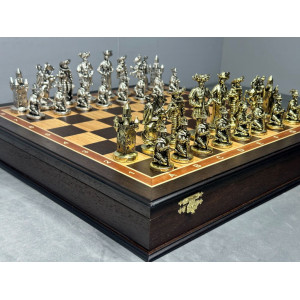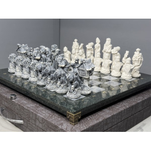 Премиальный шахматный набор из камня с объёмными сказочными фигурами ручной работы.